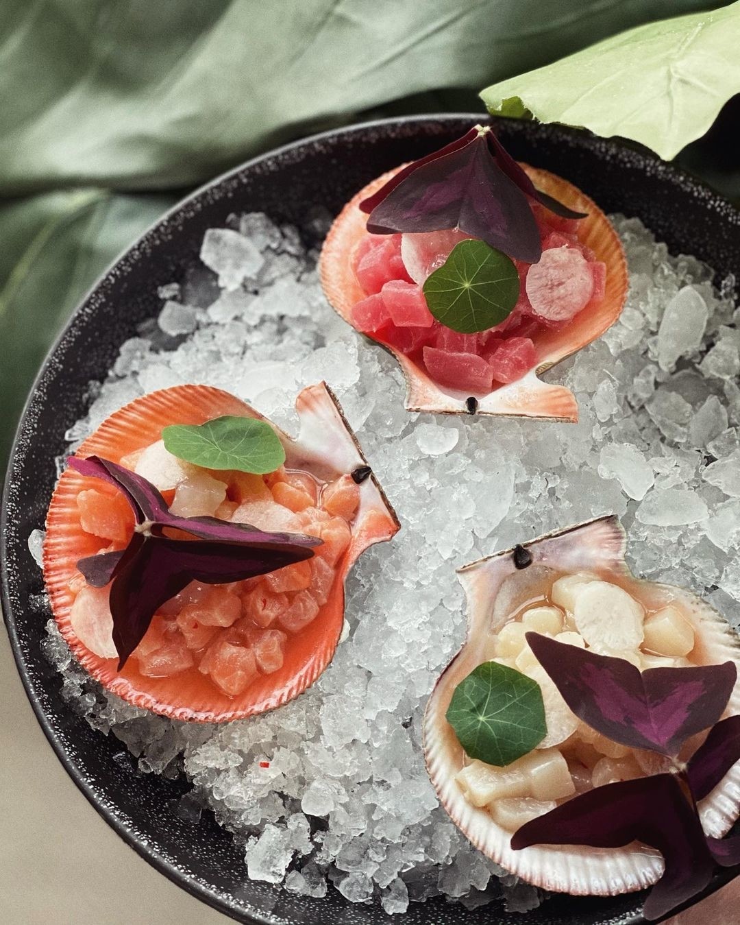 В заведении гостям предлагают два вида севиче: из лосося и из тунца. Первый готовят со спелым ананасом и облепихой под соусом манго-маракуйя: яркий, насыщенный вкус фруктов переносит в жаркие тропики. Севиче из тунца скорее пикантный: в составе маринованные помидорки черри, кунжут, зеленый лук и азиатский соус.