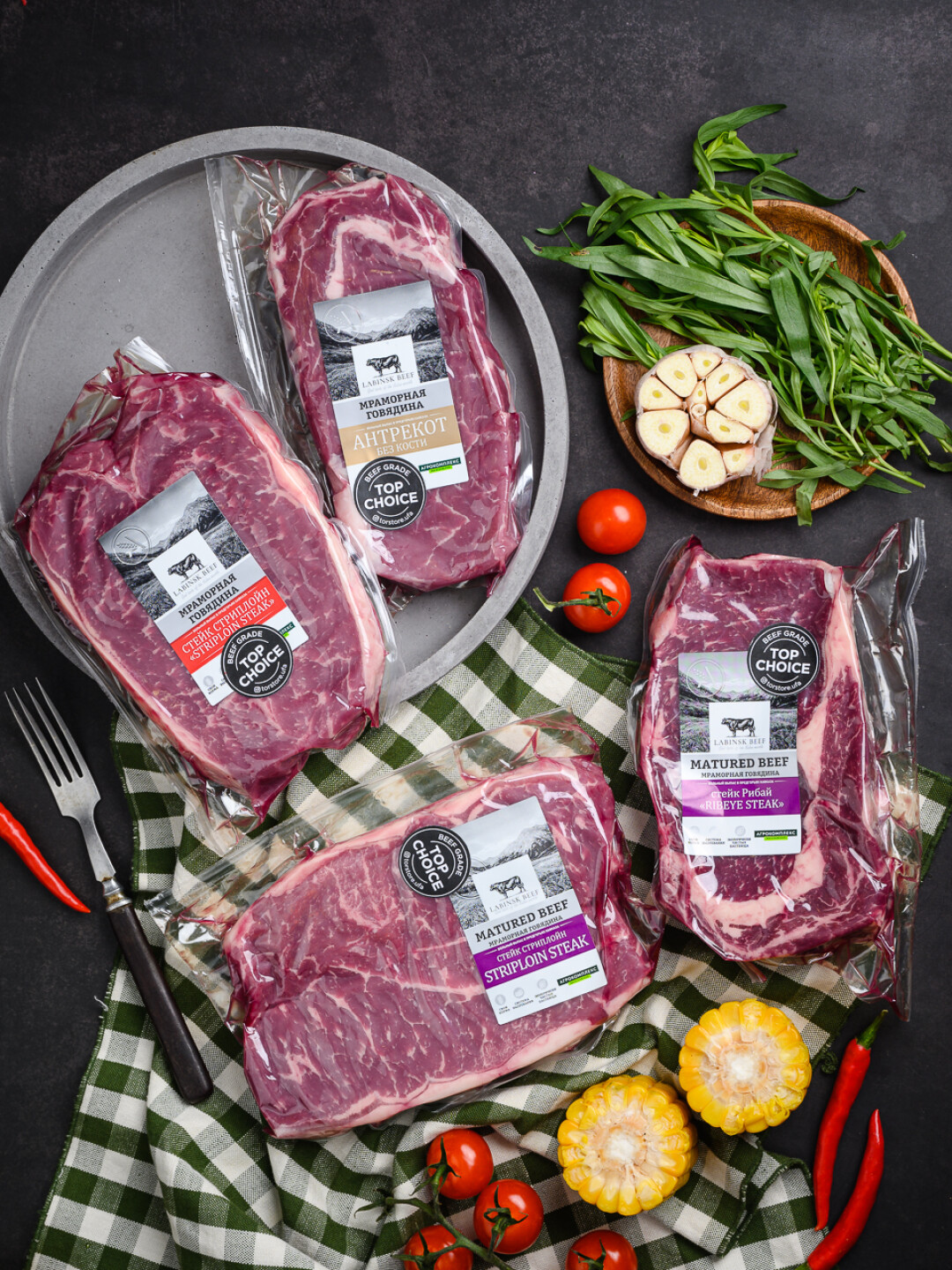 Магазин с необычной концепцией, которая удивит любого мясного гурмана. В наличии всегда свежее охлажденное фермерское мясо говядины, конины, баранины, свинины, курицы, индейки и утки. Большой выбор стейков из мраморной говядины от Primebeef и Мираторг. Большой и вкусный ассортимент шашлыков, колбасок, маринованных ребрышек стейков на гриль. Выбранный кусок мяса вам бесплатно прокрутят на фарш или распилят на стейки. Еще здесь есть пароконвектомат для запекания рулетов, утки, гуся, бараньи ноги. Также можно побаловать себя копченой и вяленой кониной.
