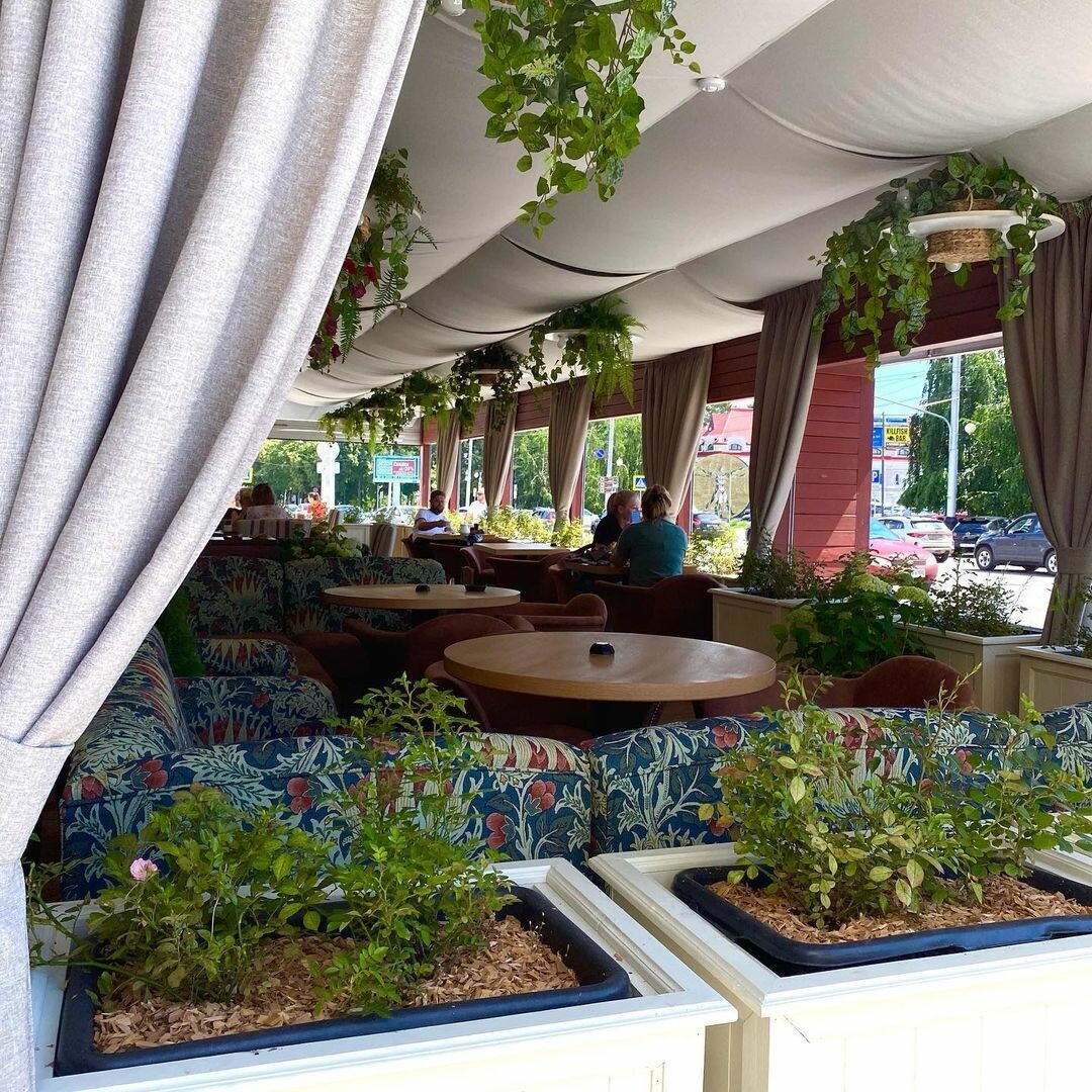 У ребят открылась веранда – видимо, по принципу «лучше поздно, чем никогда». Не будем ворчать, потому что место получилось по-настоящему красивым: здесь просторно, зелено, а диваны такие мягкие, что хочется утонуть в них навсегда – или по крайней мере до завтра.