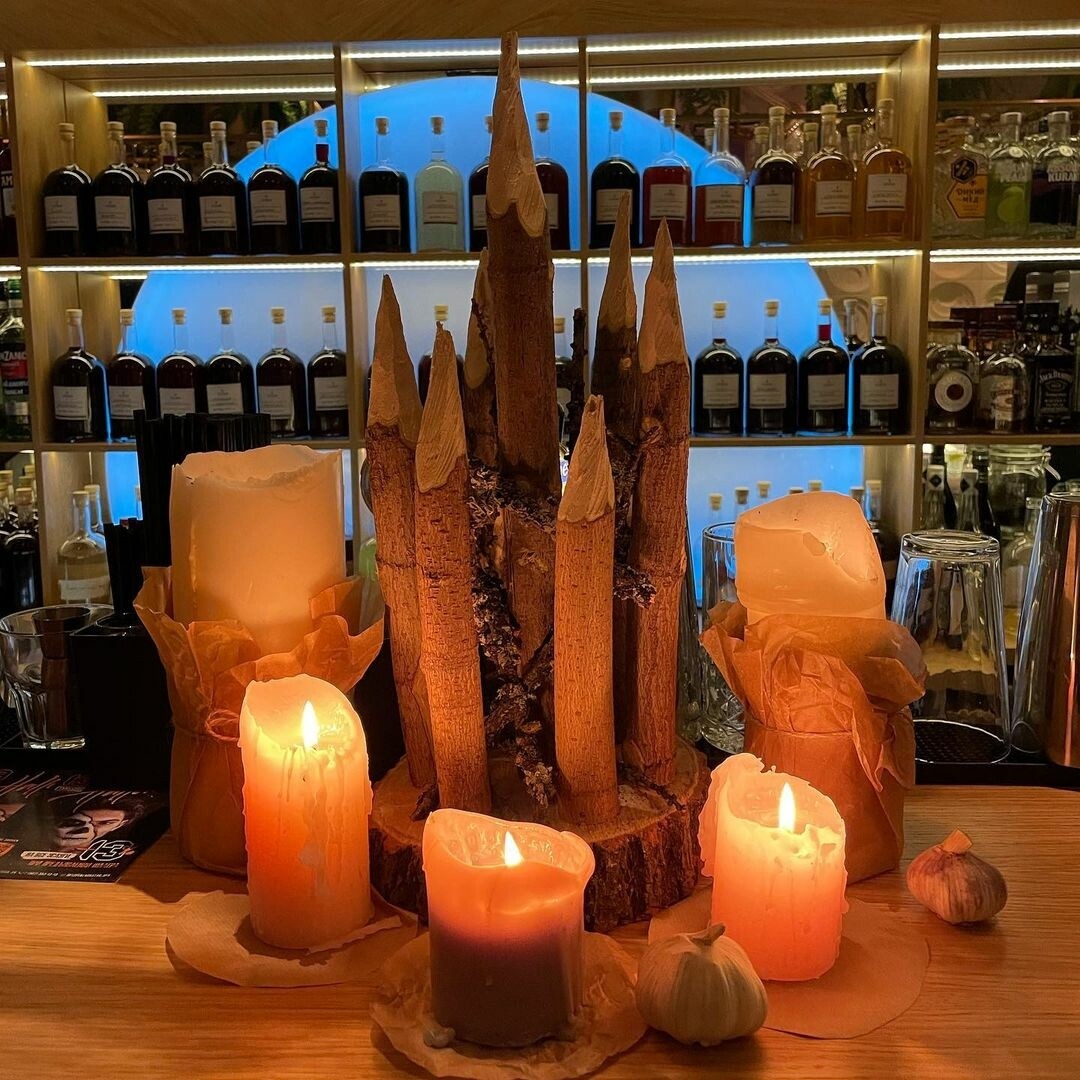 Ребята приглашают всех желающих принять участие в обряде очищения от беснующихся ведьм, вурдалаков, кикимор, чертей и прочей нечисти. Ко встрече с ними здесь подготовились основательно: наточили колья, накопали чеснока, запаслись святой водой. В пятницу всем неприкаянным бесом обещают настойку «Чеснок-Молоко» (под видом кокосовой), в субботу – «Капитошку» на тыкве и башкирском меду.