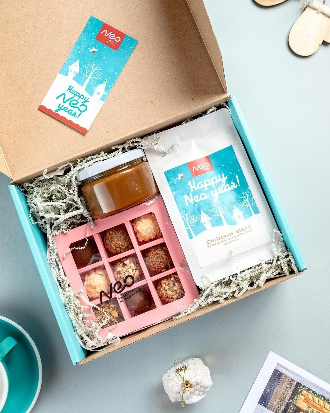 Креативные идеи для подарков – то, что в декабре на вес золота. Если еще не придумали, что дарить друзьям и коллегам, загляните в Neo: здесь можно собрать очень симпатичный и и вкусный наборчик. на фото, например, трюфели, соленая карамель и кофе в зернах. 1600 рублей за все удовольствие.