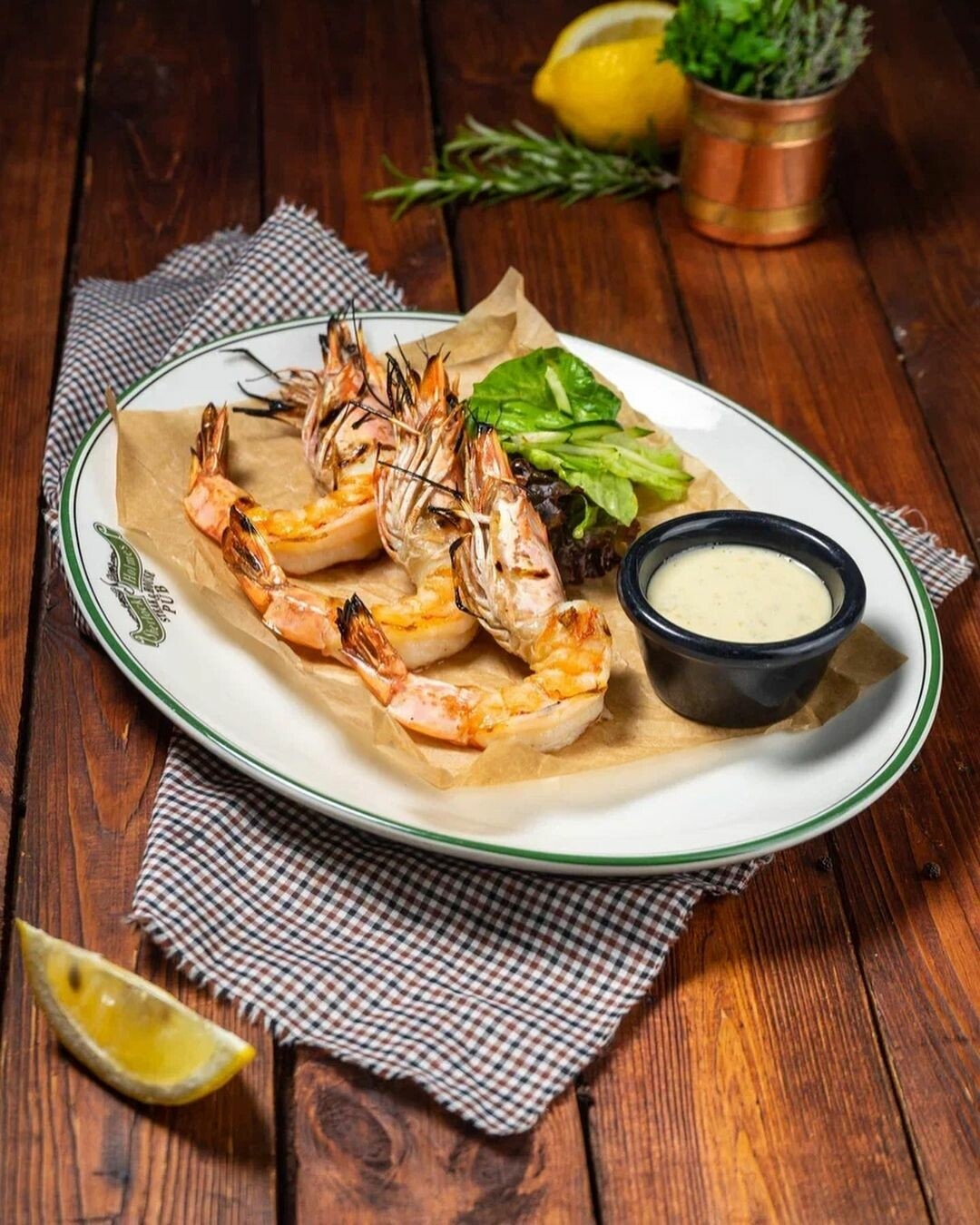 Захотелось морепродуктов? Смело заказывайте черные тигровые креветки с зеленым салатом и соусом зеленый чили. Это очень вкусно: проверено!