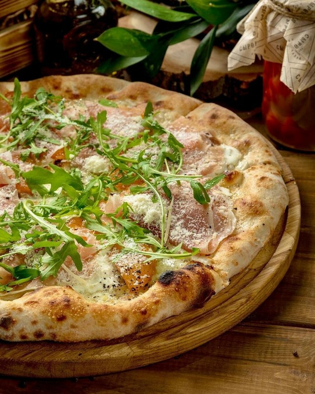 Еще один спешл, о котором мы просто обязаны рассказать (а вы – обязаны его попробовать!) Сезонная пицца с хурмой и пармской ветчиной – утонченное и одновременно очень сытное блюдо.