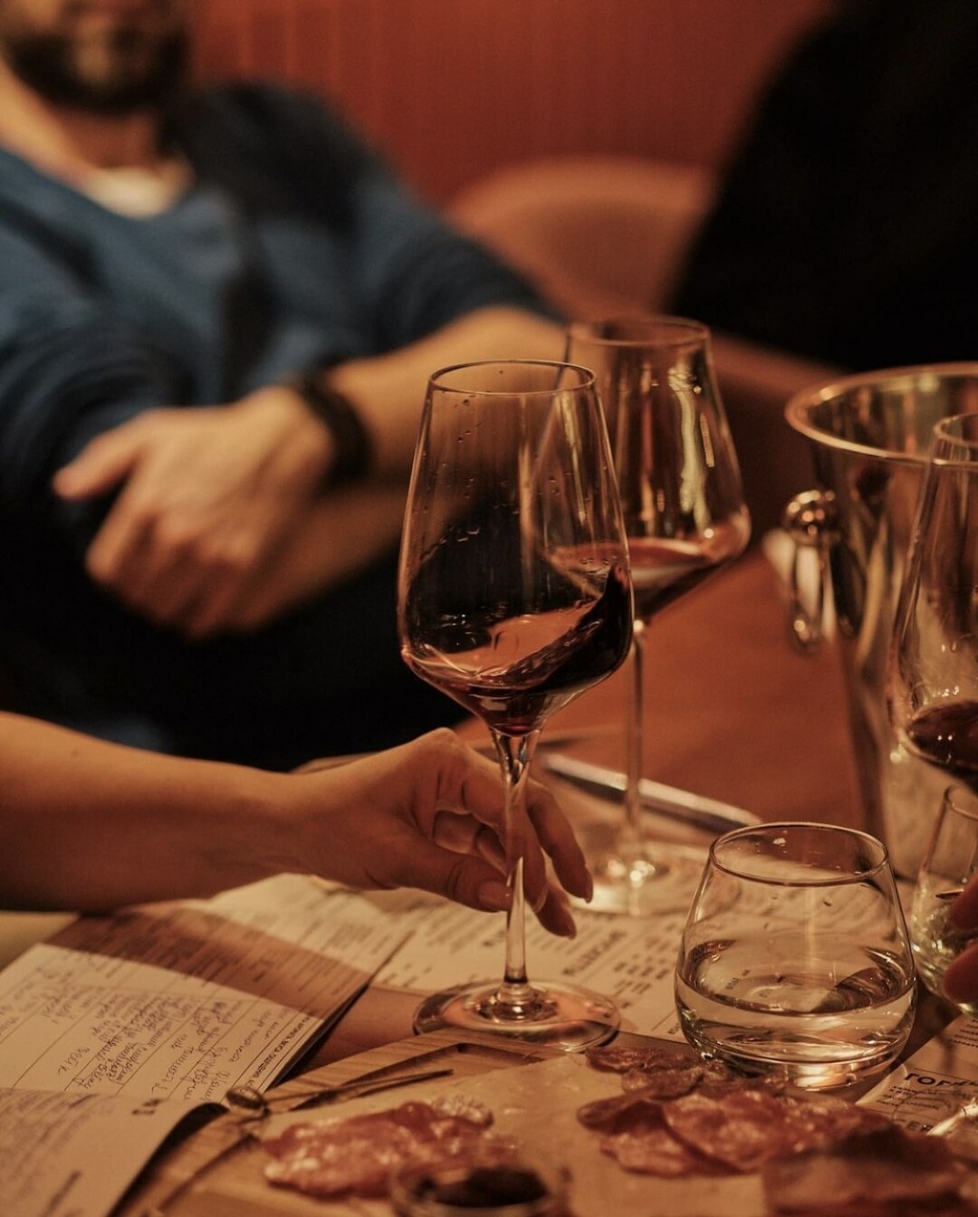 В баре запустили сет французских вин. Здесь можно попробовать красное вино из сорта винограда Пино Нуар с насыщенным ароматом красных ягод, фиалки и пряностей, вино с северо-запада Франции.