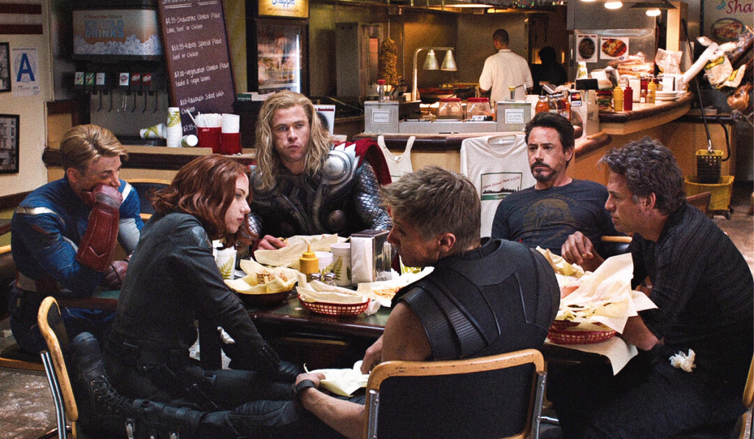 После спасения Нью-Йорка от Локи и вторжения Читаури Тони Старк предложил товарищам по команде пойти съесть «какую-то шаурму». Для нас с вами шаурма – это не какая-то экзотика, так что давайте выберем наиболее колоритный вариант. Мне нравится армянская шаурма из шашлыка на остановке около сквера Маяковского, аромат которого распространяется на квартал вперед, шаурму вы сможете выбрать с курицей или свининой, а внутри есть пара столиков, чтобы разделить трапезу только с самыми близкими спасителями мира.