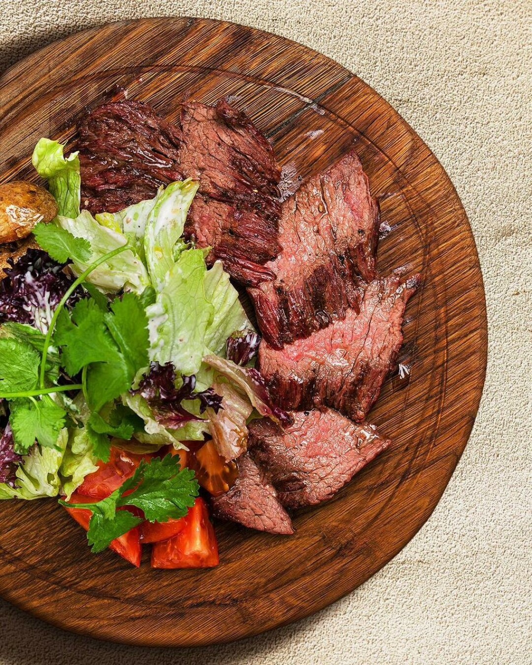 Нежные и сочные кусочки мяса, свежие овощи и зелень – это одно из блюд, которое войдёт в обновленное меню ресторана. Уже скоро!