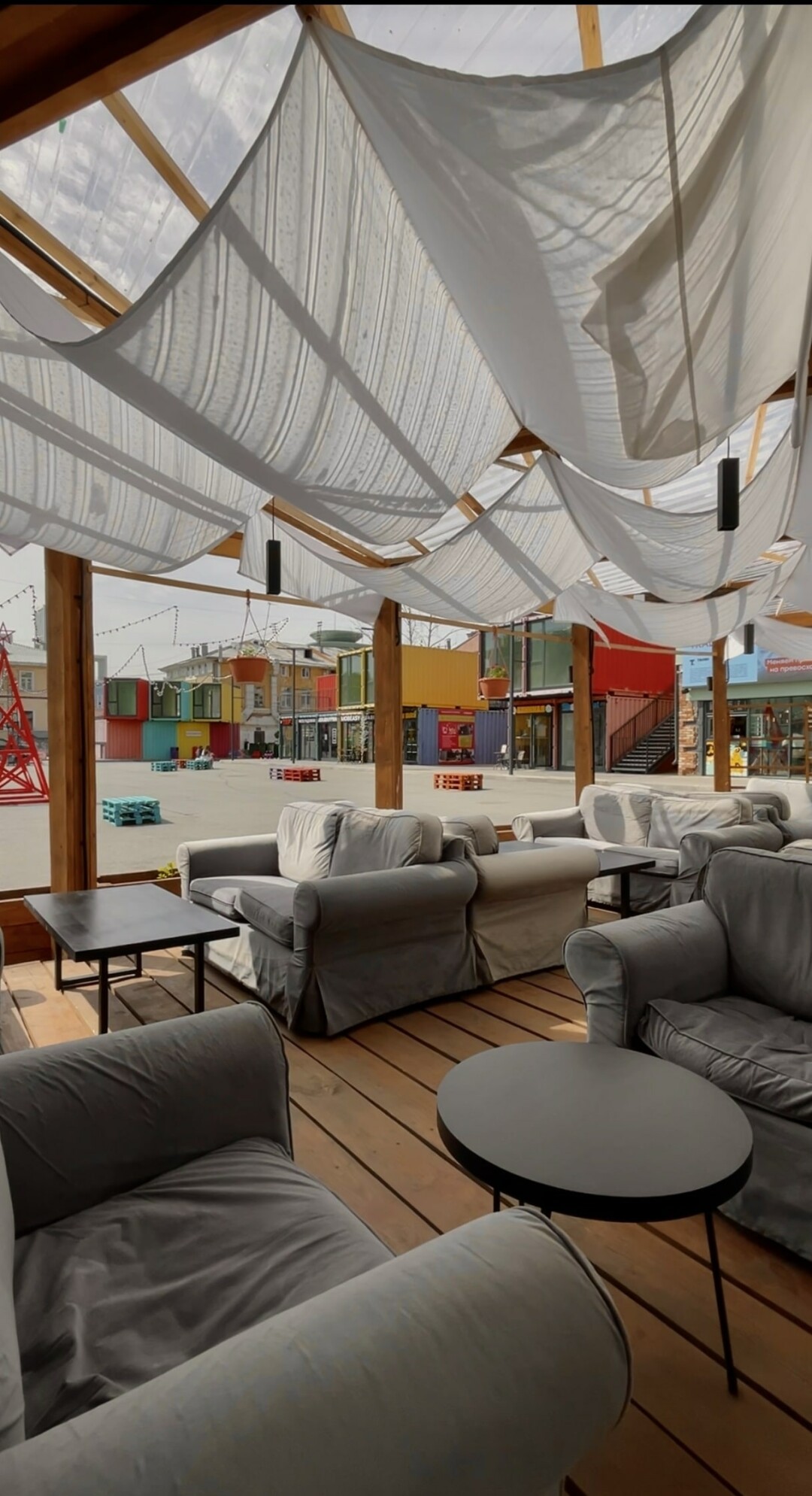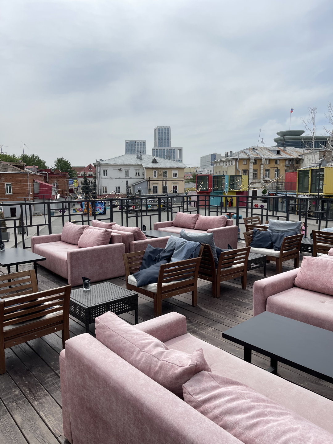 У бара целых три открытых локации: балкон, нижняя и верхняя веранды. На всех этажах большие удобные диваны и кресла с мягкими подушками, с балкона открывается красивый вид на «Арт-квадрат». Верхняя терраса расположена в первом квадрате, она отличается от других локаций – здесь можно отдохнуть на лежаках, в меню бара больше премиальных позиций, а еще этот летник будут орошать одним из первых, чтобы гостям не было жарко от палящего солнца. Кроме того, что у веранд разный стиль интерьера, в каждой локации подают разные напитки. Летом на террасах проводят вечеринки и фестивали, в июле «Крепость» отметит свой третий день рождения – праздновать будут на всех четырех локациях заведения! На летнике около 130 посадочных мест для гостей, а наслаждаться любимыми напитками можно до пяти утра.