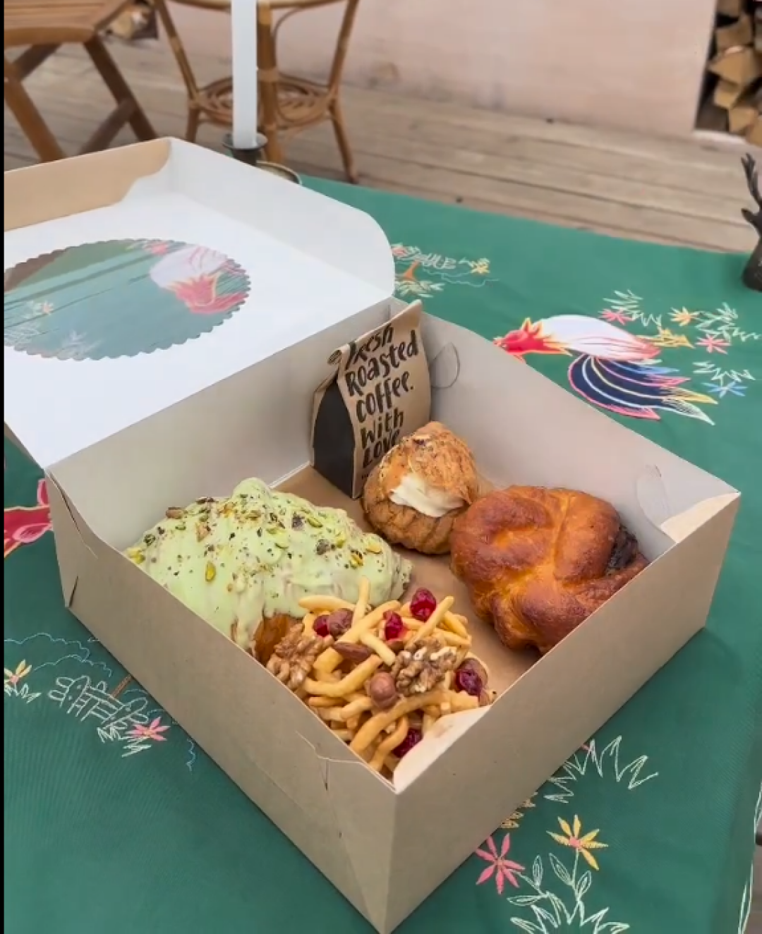 На каждой точке пекарен-кондитерских соберут боксы с выпечкой. Их можно наполнить, например, круассанами, эклером, кофе, малиновым «Шу».