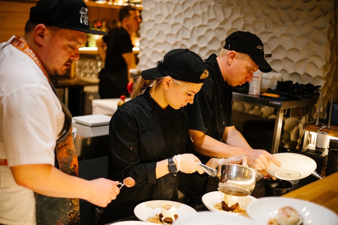 В ресторане обновили меню: в нем теперь есть роллы с лососем, творожным сыром и стружкой тунца, буррата с манго, крем-суп из кукурузы, уха по-фински, десерт с фундучным пралине, ореховым муссом и вафельной крошкой.