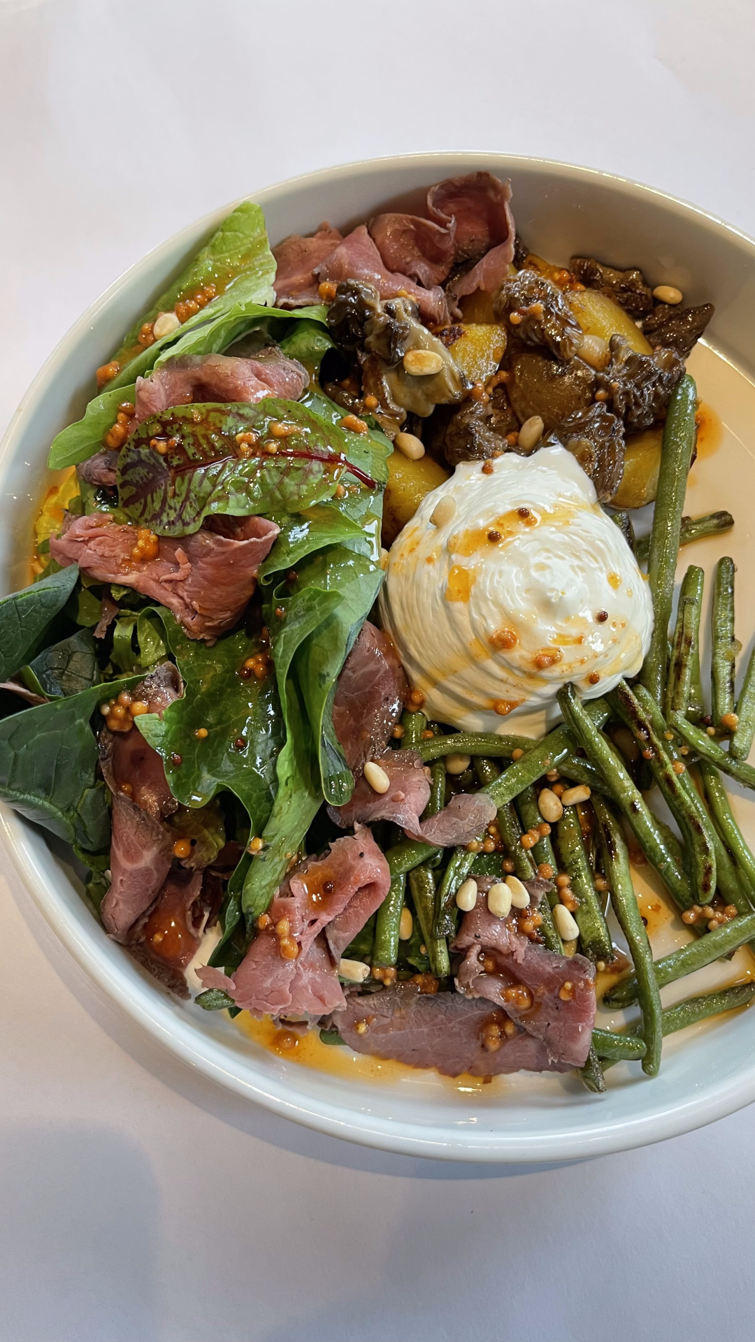 В ресторане запустили специальное меню к сезону сморчков. Здесь теперь подают салат с ростбифом, сморчками, стручковой фасолью и кедровыми орехами, пельмени с говядиной и грибным бульоном, шею бычка с картофельным гратеном и муссом из пармезана.
