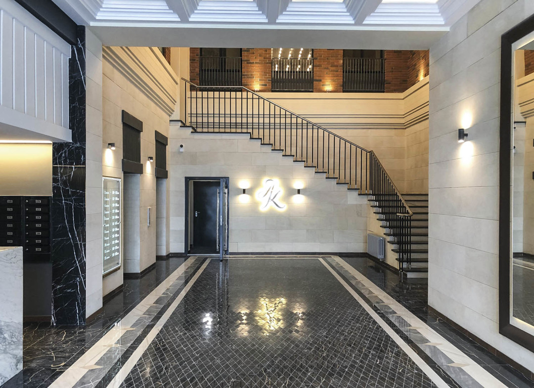 Элитарность прослеживается в ЖК «Аристократ» буквально во всем. Начиная с престижного месторасположения с прекрасными видами на парковую зону и эксклюзивного дизайна фасадов, заканчивая уникальностью интерьеров общественных пространств. Подъезды с эффектными атриумами украшены витражами с цветным стеклом и большими дизайнерскими люстрами, стены отделаны мрамором и гранитом, на потолках – оригинальные навесные конструкции, а на полу – дизайнерская керамическая плитка.