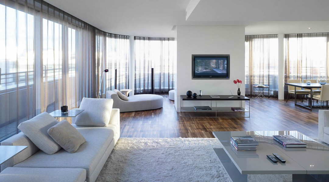Несмотря на то, что площадь пентхаусов разная – от 68 до 172 квадратных метров, потрясающая панорама видна из любой точки помещений. Бесспорными плюсами пентхаусов являются тишина и свежий воздух – ни шум, ни выхлопные газы на такую высоту просто не доходят.