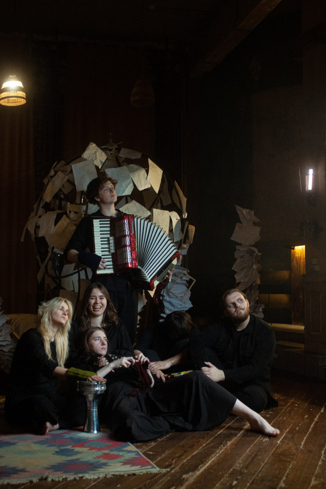 Они собирают полные залы и толпы на фестивалях. Их песни моментально застревают в голове (напеваем «Камушки» всей редакцией!). Музыку «Бонда с кнопкой» сложно отнести к какому-то конкретному направлению: это лиричный инди-фолк, в котором гитара соседствует с виолончелью и саксофоном, а вокал – с девичьими хоровыми распевками. На исходе зимы у группы вышел сингл «Кухни» – песни, которая стала хитом задолго до своей записи, завирусившись в TikTok и породив в фан-сообществе локальный мем «Когда кухни?». Чтобы понять феномен коллектива, мы поговорили с его создателем – Ильей Золотухиным (спойлер: удалось лишь частично).
