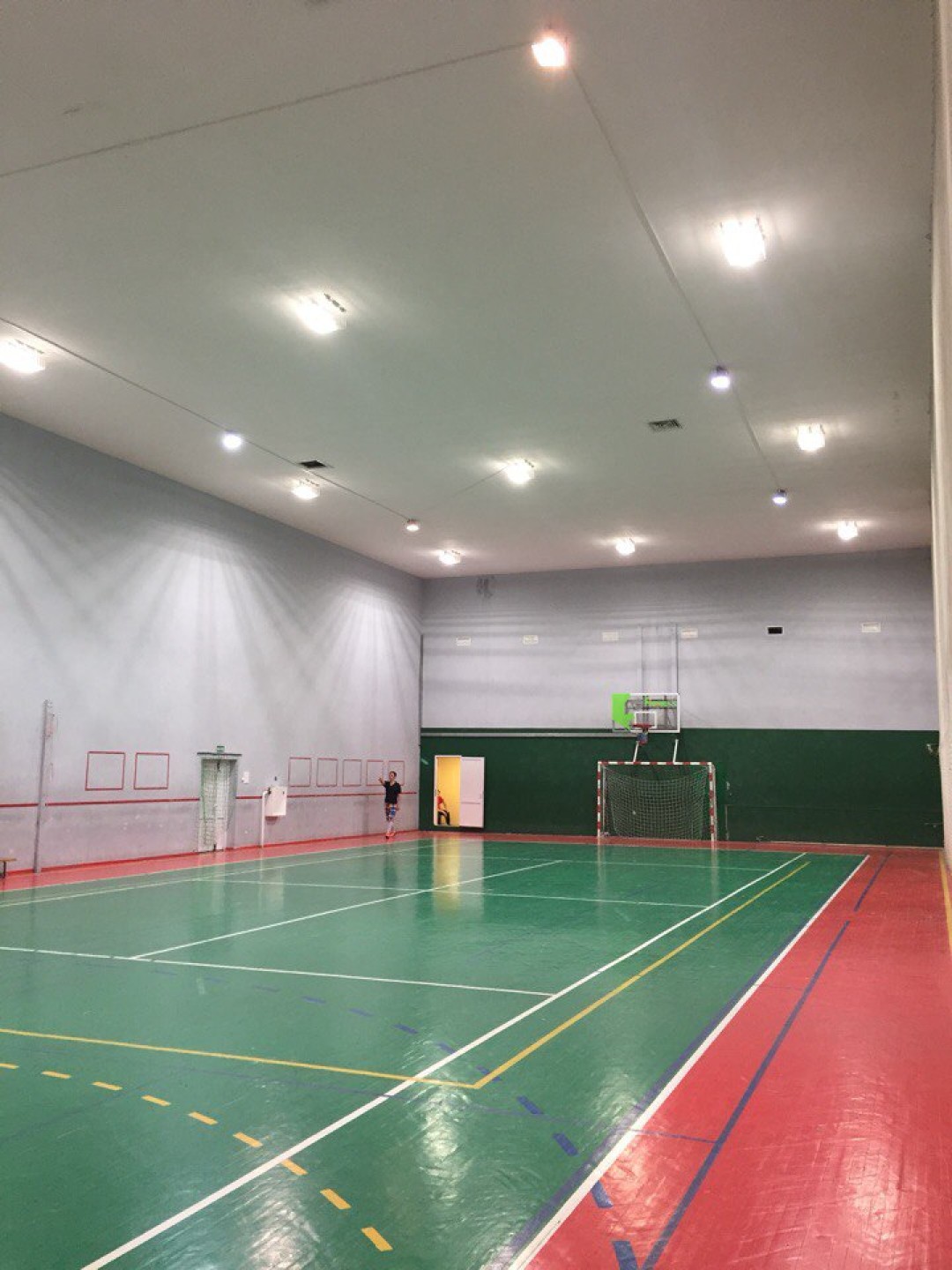 В этом универсальном спортзале можно поиграть как в мини-футбол, так и в другие командные игры (классический футбол, волейбол, баскетбол, большой теннис). В помещении хорошее освещение, высокие потолки, на паркетном полу нанесена вся необходимая разметка. Душ и раздевалка есть. Мячи зал не предоставляет, нужно приносить свои. Помещение работает и днем, и ночью, но учитывайте, что чем позже вы соберетесь играть, тем выше будет арендная плата.