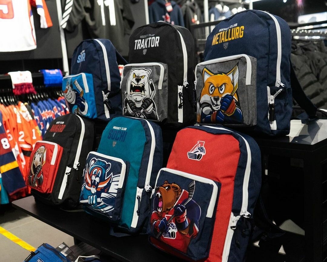 В магазинах федеральной сети продаются худи, брюки, футболки, шапки, бейсболки, фанатские шарфы и даже сумки с символикой популярных клубов НХЛ, КХЛ, а также известных российских и европейских футбольных команд. Не обходится и без сувениров – брелоков, вымпелов, значков.