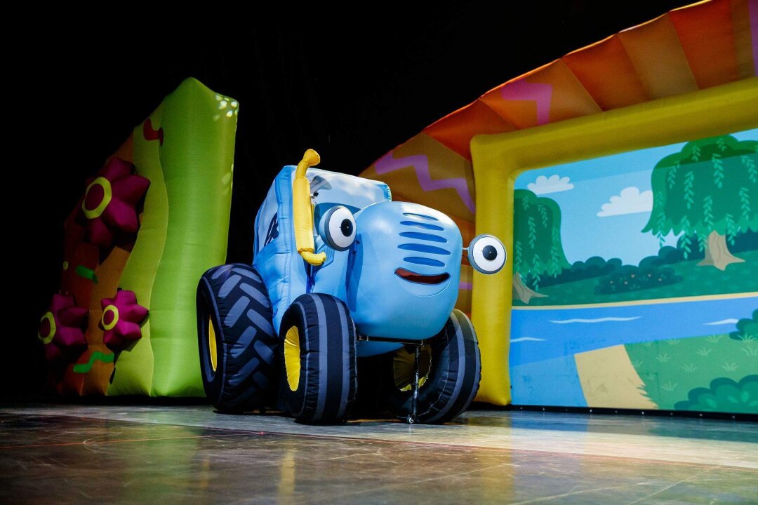 Во время музыкального шоу «Синий трактор» действие происходит как на сцене, так и в зрительном зале. Скучать и сидеть на месте точно не придется! Организаторы вписали в декорации огромный экран, создающий иллюзию настоящего путешествия не только для детей, но и для взрослых! Дети будут петь, танцевать, веселиться, прыгать, бегать и помогать главному герою.