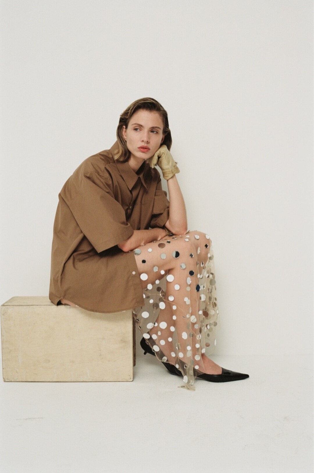 Сверкающие платья, идеальные жакеты и футболки с надписями – будущее лето по версии марки выглядит как микс спортивных и вечерних нарядов. Среди последних стоит отметить прозрачный мерцающий комплект из рубашки и юбки-миди и черное платье в пол с провокационными вырезами. Но самое заметное «возвращение»: появление того самого платья с «зеркалами», которое полюбилось многим российским и зарубежным звездным девушкам. Впрочем, оно и правда способно сделать звездой – если не сцены, то вечеринки точно – любую.