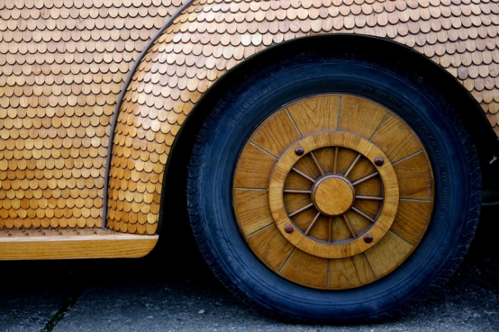 Свой шедевр Бойик создавал больше двух лет. Каждый кусочек дуба прошел 23 этапа обработки. Машина имеет не только деревянный кузов, но и деревянный руль, деревянные рычаки коробки передач, деревянные дворники, деревянные колесные колпаки, и даже деревянное радио.