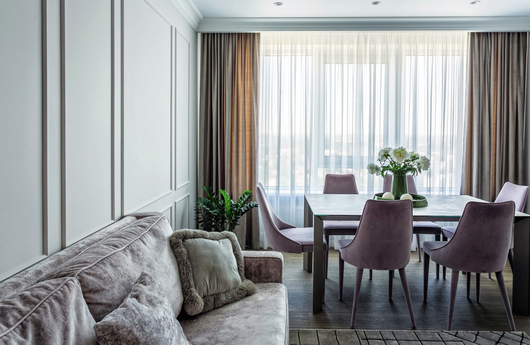 Первым этапом работы над проектом стала перепланировка. В результате дизайнеры создали просторную студию с двумя спальнями, в каждую из которых добавили гардеробную. Одну комнату заняли супруги, владельцы квартиры, а вторую – их семнадцатилетняя дочь. Гармоничность и удобство интерьера подчеркнули соответствующей мебелью. Все предметы выполнены в лаконичной форме, с минимумом деталей и в нейтральных оттенках, поэтому пространство визуально получилось легким.