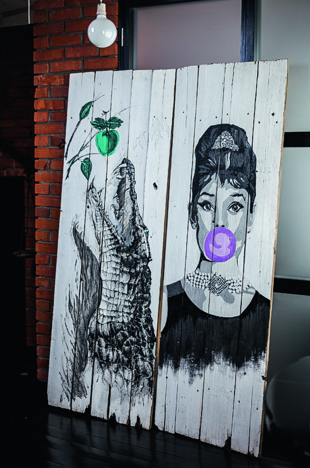 У меня на складе есть пара столов, пять-семь светильников, пара картин и триста идей. Так что арт-объекты я делаю, когда приходит вдохновение, чтобы воплотить какую-то конкретную идею, и редко конструирую их под специальный интерьер. Часто идеи приходят неожиданно: однажды, сплавляясь по Уфимке, увидел, что мимо проплывают красивые бревна, погрузил их в лодку, а уже потом нашел им применение. А вот концептуальное зеркало, оно же – дверь из неструганной липы, делалось для комнаты с высотой потолка в четыре метра, например. Поэтому оно пока стоит у нас в офисе, возможно, ждет своего интерьера.