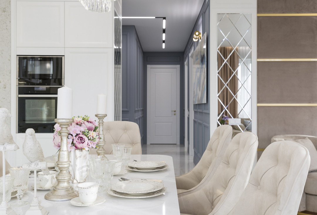 Неброские светлые оттенки и полутона, авторский текстиль, эксклюзивная мебель, утонченные аксессуары. На таких элементах строится стиль ар-деко, воплощенный в трехкомнатной квартире, расположенной в ЖК «Аристократ». Его воплощением в жизнь занималась дизайнер Маргарита Коротаева.