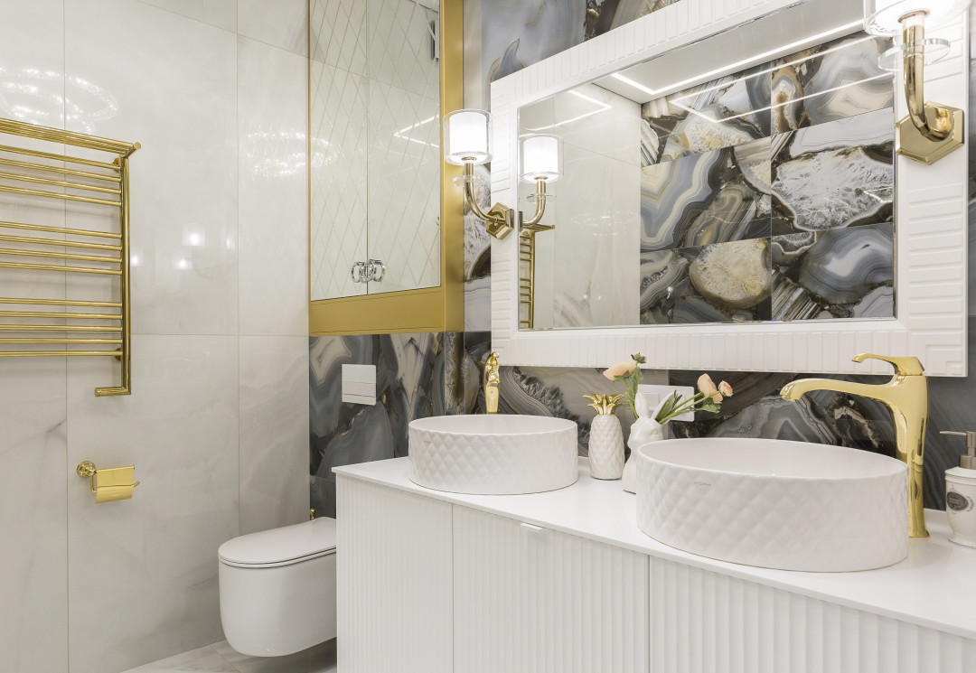 Плитку для обоих санузлов выбрали из новых коллекций керамоганита Preziosa, Aesthetica и Agatha, которые раскрывают все великолепие природного агата с его мягкой элегантностью.