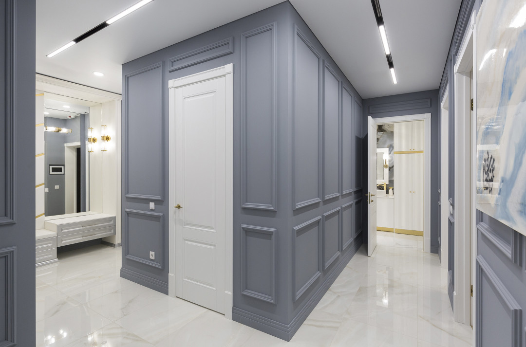 В студии дверей выбрали двери под стать интерьеру. Прошедшие сложную систему контроля качества межкомнатные двери Potential отличаются высококачественной итальянской эмалью, а надежные входные двери премиум-класса Portalle имеют шумоизоляцию более 40 дБ и комплектуются итальянской фурнитурой.