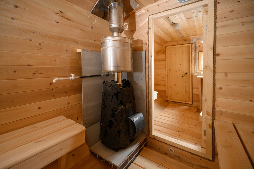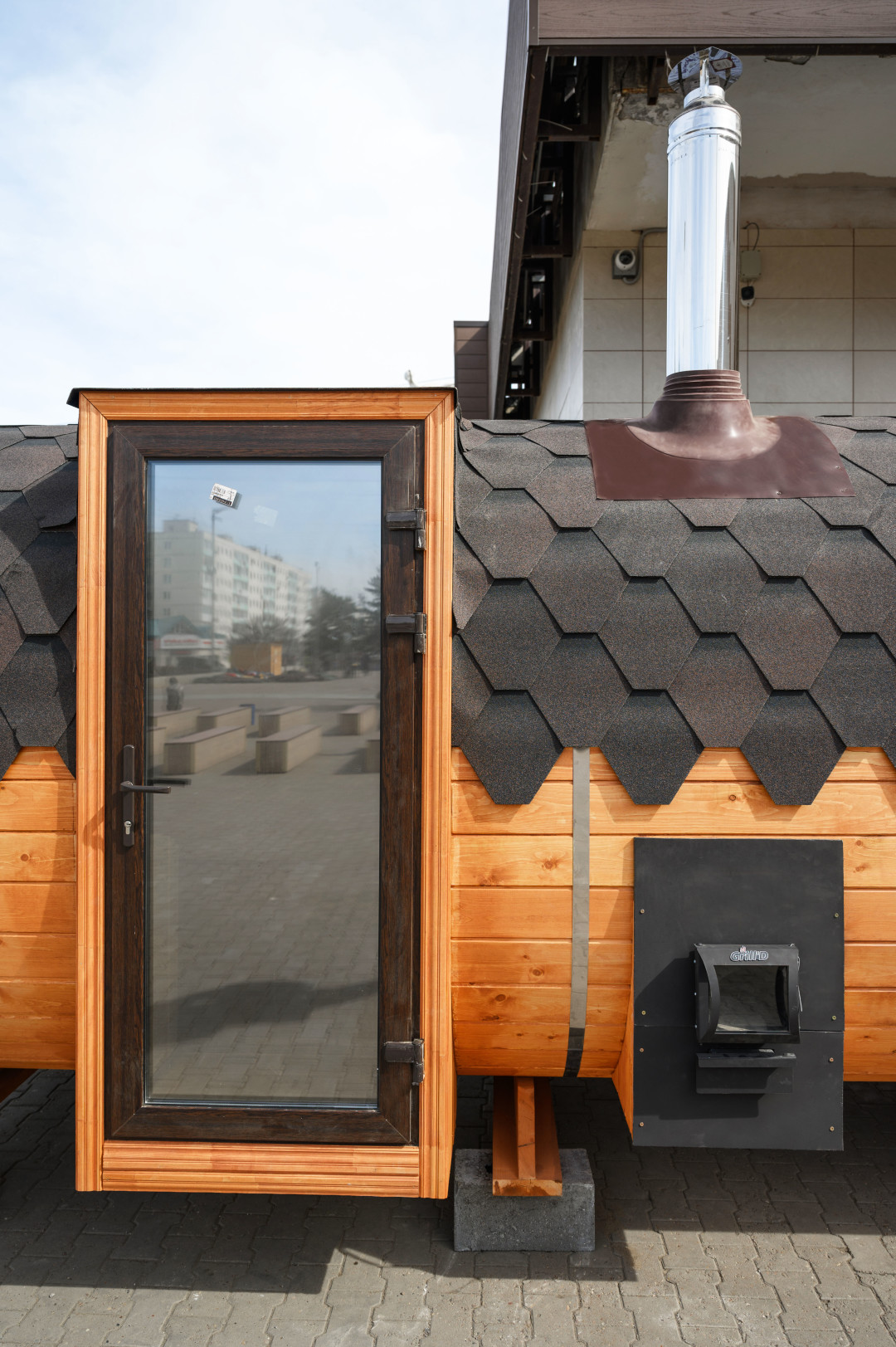 В каталоге компании несколько вариантов построек: одно-, двух- или трехсекционные. Самый простой вариант имеет длину два метра и диаметр 2,2 метра. В двухсекционной модели длиной три метра есть парная и предбанник. А в пятиметровой «трехкомнатной» бане предусмотрена еще и моечная. В стандартную комплектацию бочки входит печь от Сталь-Мастер «Рада» или модели Grill'D Aurora 160, 40 кг камней для нее, бак на 50 литров воды, полки и столики. При этом площадь самой большой бани займет всего 0,15 сотки.