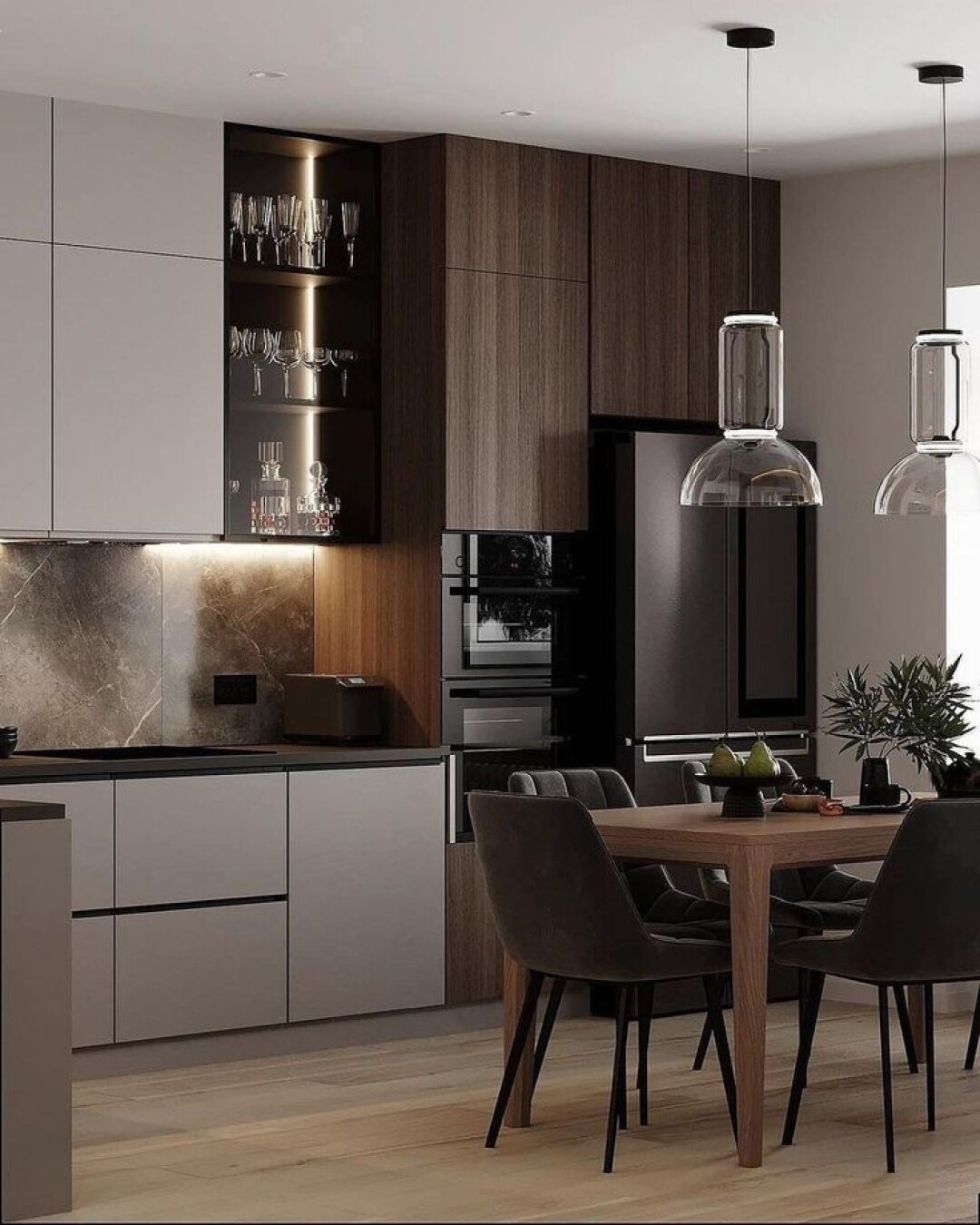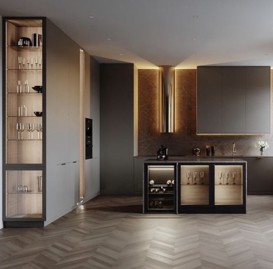 Чтобы приготовление еды было всегда приятным, на кухне должно быть комфортно. Хорошо, когда все предметы визуально доступны и находятся под рукой, их удобно доставать и убирать, когда достаточно света и визуально пространство всегда чистое. Реализовать эти моменты просто: нужно продумать функционал и эргономику под ваши потребности. Кто готовит в доме чаще всего? Подстройте высоту столешницы и разместите верхние секции с учетом его роста. Это избавит от дополнительных нагрузок на спину и возможных травм. Сразу продумайте количество вещей, которые необходимо расположить в ящиках. Посуда на каждый день должна быть легкодоступной, а казан для плова, которым вы пользуетесь раз в полгода, можно убрать подальше. Если вы много и с удовольствием готовите, предусмотрите практичный кухонный «фартук».