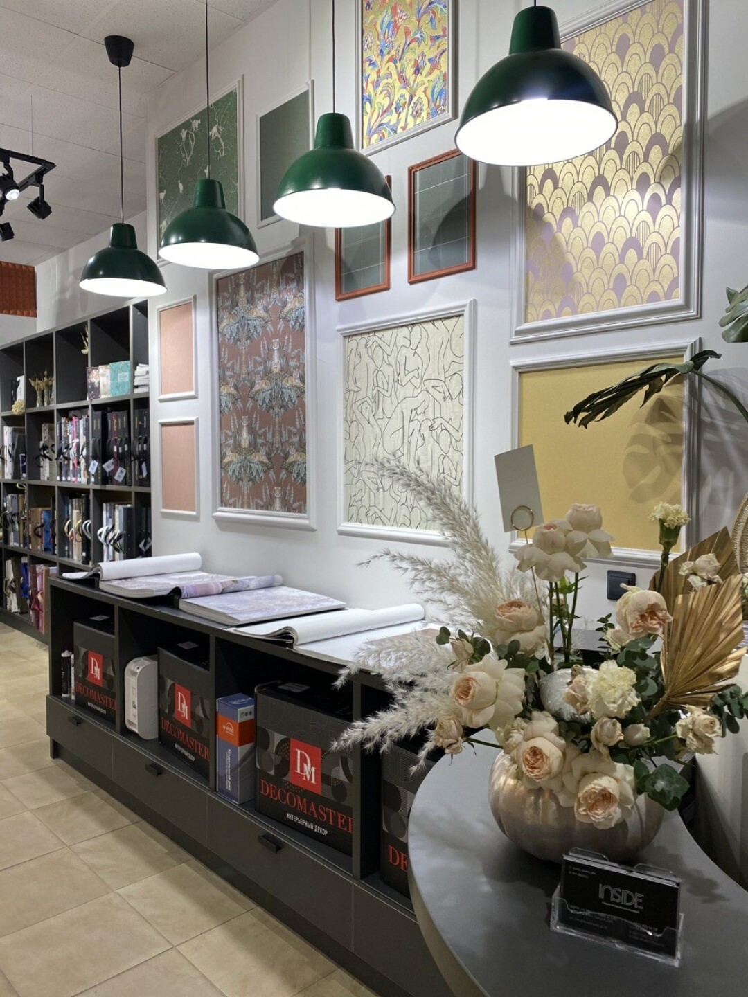 Студия интерьерных решений предлагает материалы для внутренней отделки. В ассортименте более двадцати пяти тысяч оттенков краски, обои от российских и европейских брендов, лепной декор, багеты, фрески, фотообои и 3D-панели. Компания является официальным дистрибьютором производителей Loymina, Milassa, Swiss Lake, NMC. Также в наличии марки Decor Dizayn, Decomaster (Inside – официальный представитель брендов в РБ). Особой популярностью пользуются краски Swiss Lake, которые отличаются глубиной цвета, превосходно колеруются и легко моются. В салоне можно попробовать краску в деле, а еще взять с собой выкрасы или молдинги, чтобы «примерить» их в интерьере. Кроме того, возможен бесплатный выезд специалиста к вам на объект. Доставка материалов под заказ занимает до семи дней.