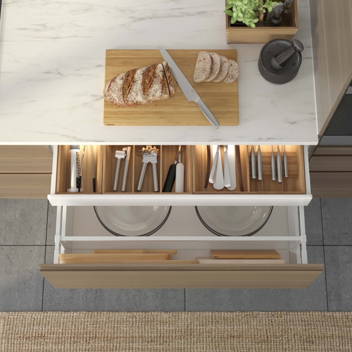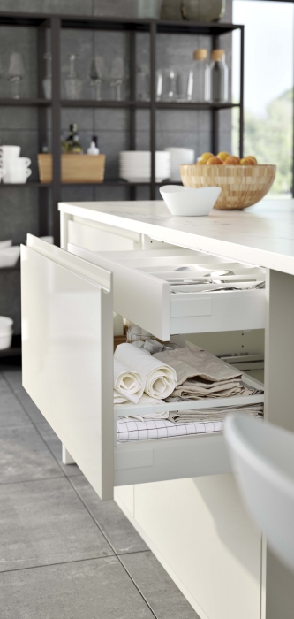Система кухонных шкафов МЕТОД создана специально, чтобы обеспечить свободу проектирования кухни, которая точно соответствует вашим потребностям и пожеланиям. Все компоненты – от каркасов шкафов до фасадных ручек – разработаны таким образом, чтобы у вас было максимальное число возможностей их комбинировать. С кухней МЕТОД вы можете создать буквально тысячи решений, среди которых точно найдется подходящее. За гладкой поверхностью фасадов ВОКСТОРП вы найдете внутреннее пространство шкафов, обустроенное в точном соответствии с конкретными потребностями в хранении. Бамбуковая подставка ВАРЬЕРА для ножей и ящики МАКСИМЕРА, которые выдвигаются из ящиков большего размера и благодаря специальным разделителям имеют множество отделений, позволяют максимально эффективно задействовать все имеющееся в шкафах место и поддерживать в них идеальный порядок.