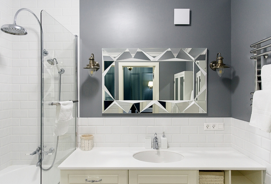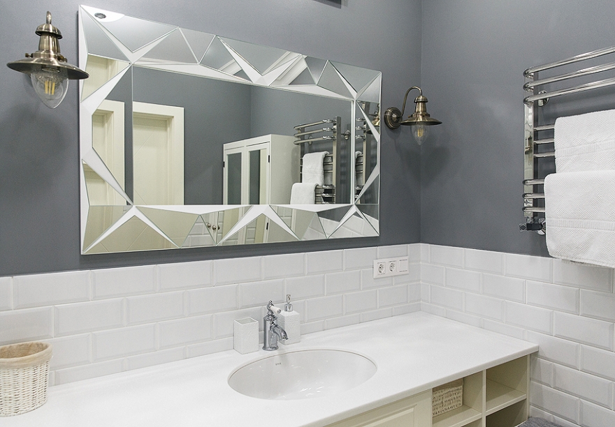 Непременным пожеланием хозяйки дома было наличие гардеробной. После перепланировки такая зона появилась: мебель для нее делали на заказ, эскизы – авторов проекта. Еще одно функциональное помещение, созданное в результате переделки, – кабинет, который расположился в утепленной лоджии. Панорамное остекление, большое количество стеллажей и шкафов и большой рабочий стол позволяют здесь полноценно и комфортно работать. Пол в этой зоне, так же как и в коридоре, выложен плиткой в виде ковров марки Vives – ее заказали в салоне «Альфа-керамик». Эта же компания занималась поставкой плитки для хозяйской ванной, площадь которой увеличили, что позволило скрыть всю технику и специально установленный водонагреватель за особой перегородкой. Это сохранило изящность интерьера помещения, которую создают большое зеркало с фацетами и нарядные светильники. Сантехническое оснащение ванной взяла на себя компания Сантехника для вашего дома: ванна, душ, смесители, в том числе кухонные, а также полотенцесушители – все было заказано именно у них.