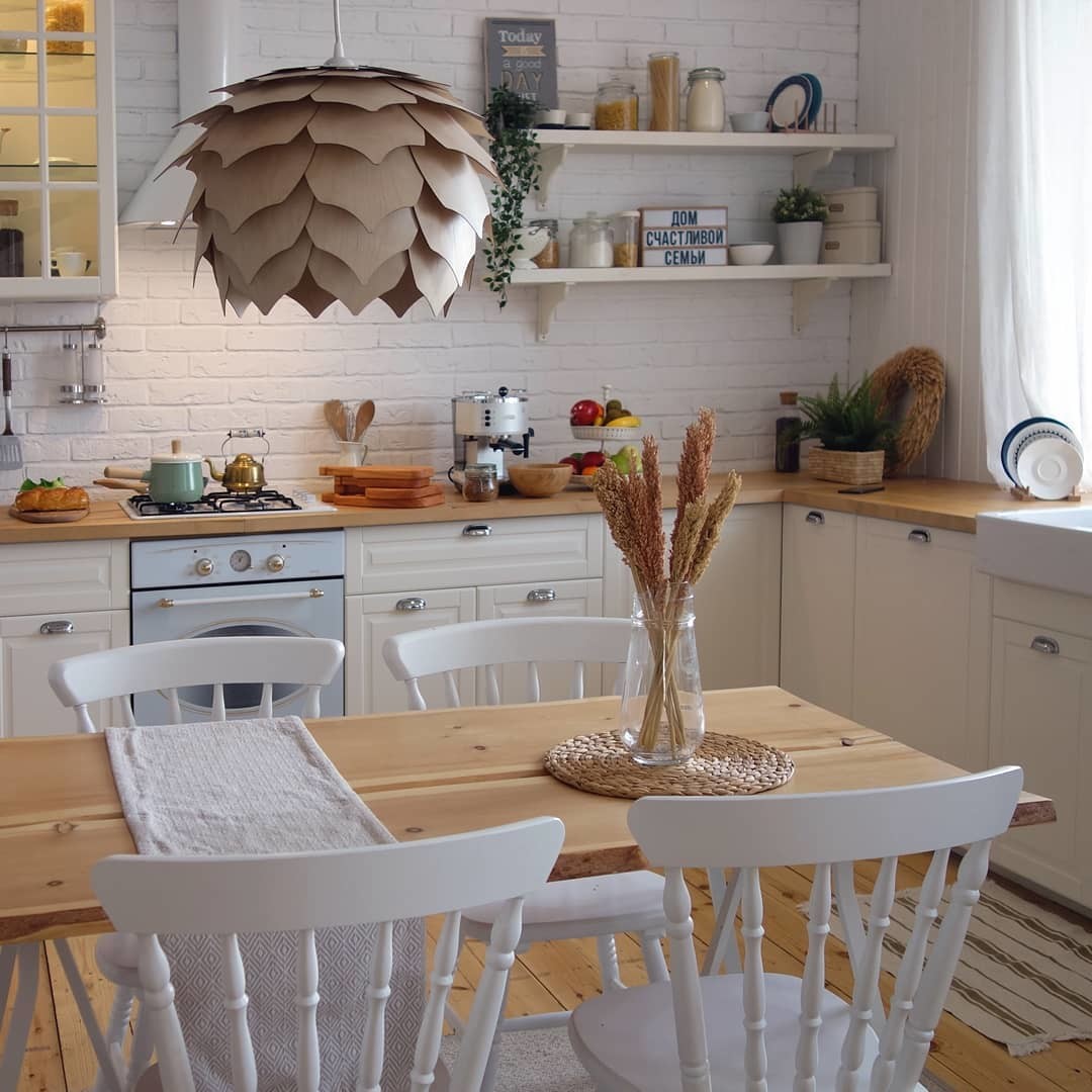 Грамотно подобранная люстра и торшер смогут сделать пространство «завершенным» и уютным. Даже если помещение простое и лаконичное, не скупитесь на светильники, так как они могут стать решающим элементом в цельности интерьера. Так, например, если вместо обычной подвесной люстры на кухне вы повесите над столом непривычно большой светильник – он придаст интерьеру уникальности и харизмы. Пробуйте!
