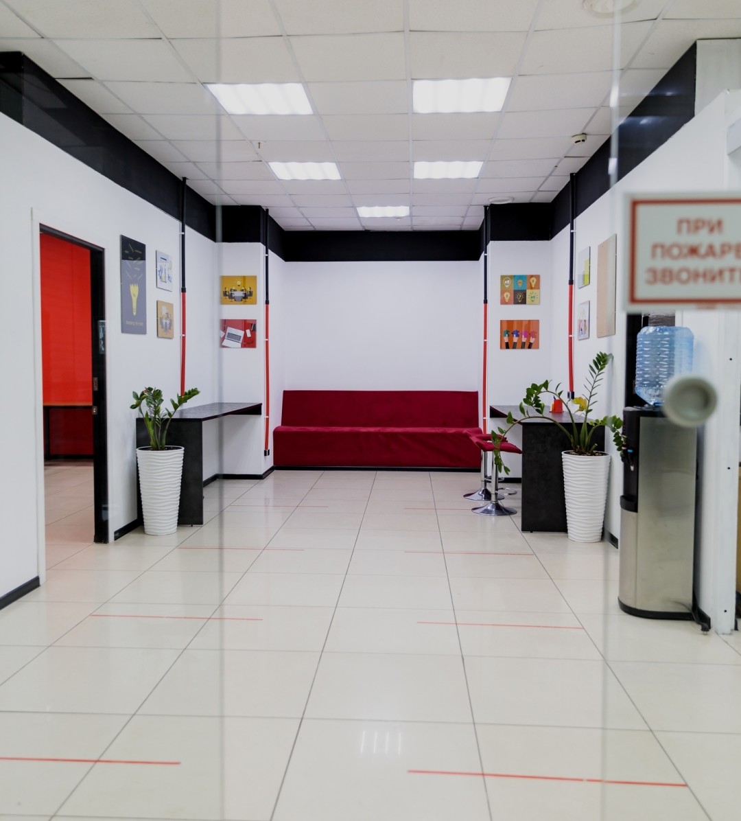 Из рабочей зоны открывается панорамный вид на город. Расположение в самом торговом центре добавляет свои плюсы: в пешей доступности есть кафе, банкомат и продуктовый магазин. В стоимость, в зависимости от тарифа, входят аренда рабочего места, бесплатный интернет, чай и кофе, можно пользоваться холодильником, микроволновой печью, ящиком для хранения вещей, магнитным ключом и получить скидку на абонемент на парковку у ТСК. Оплата за целый день – 350 рублей, за неделю – 1800 рублей, за месяц – 3600 рублей. На крыше есть открытая терраса, доступная в теплое время года.