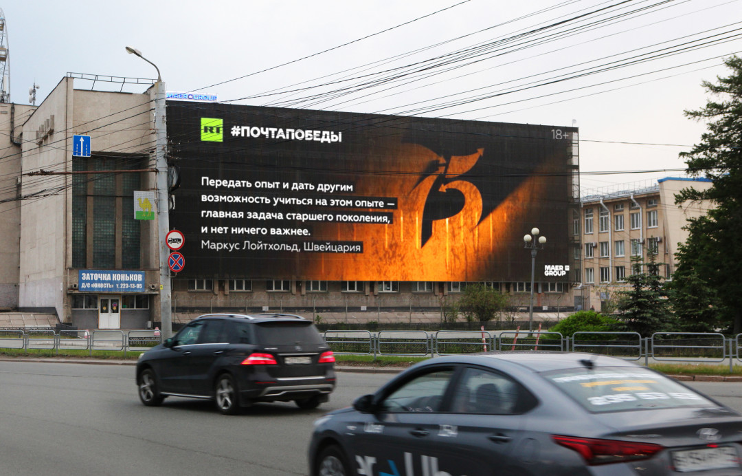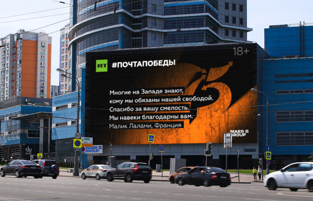 Акция прошла при поддержке федерального оператора имиджевой рекламы Maer Group и была приурочена к параду Победы, который состоялся 24 июня на Красной площади в Москве. В рамках проекта #ПочтаПобеды телеканал RT рассказал истории ветеранов Второй мировой войны, предложив зрителям написать им письма. Редакция телеканала получила сотни трогательных посланий из стран Ближнего зарубежья, Великобритании, Германии, Франции, США, Китая и других стран. Часть из них вошла в видеопроект, который показал Maer Group: