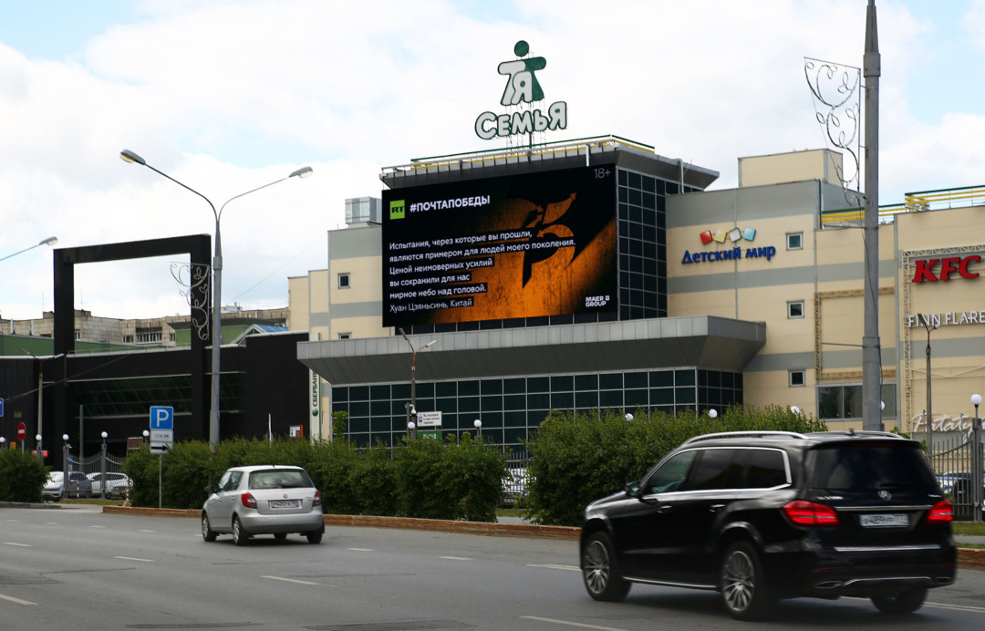 Серию роликов проекта телекомпании RT #ПочтаПобеды со словами благодарности ветеранам Великой Отечественной войны показали на премиальных медиафасадах Москвы и других городов России. В Уфе зрители увидели проект на медиафасаде, установленном возле Южного автовокзала.