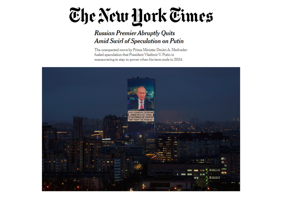 Своеобразная «лента новостей» от Maer Group обратила на себя внимание крупных зарубежных и российских СМИ: на фоне медиафасадов с цитатами президента в ключевых регионах России проводились репортажные съемки и опросы общественного мнения. Так состоялась премьера нового медиапространства, которое претендует на звание нового вида СМИ.