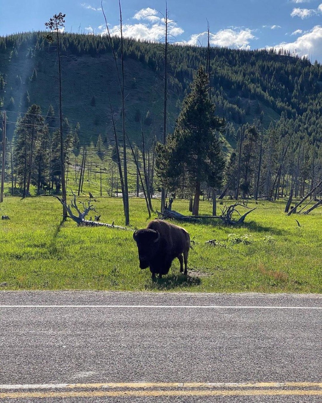 В Йеллоустоуне мы видели огромное стадо бизонов и громадного медведя. В один момент подумали: а чего это все машины остановились? Оказывается, у дороги гризли валил бревно и разрывал его в клочья. Кроме него мы видели лису, выдру, мелких грызунов, оленей. Но главное – встретили волка! Это мы уж точно не забудем.