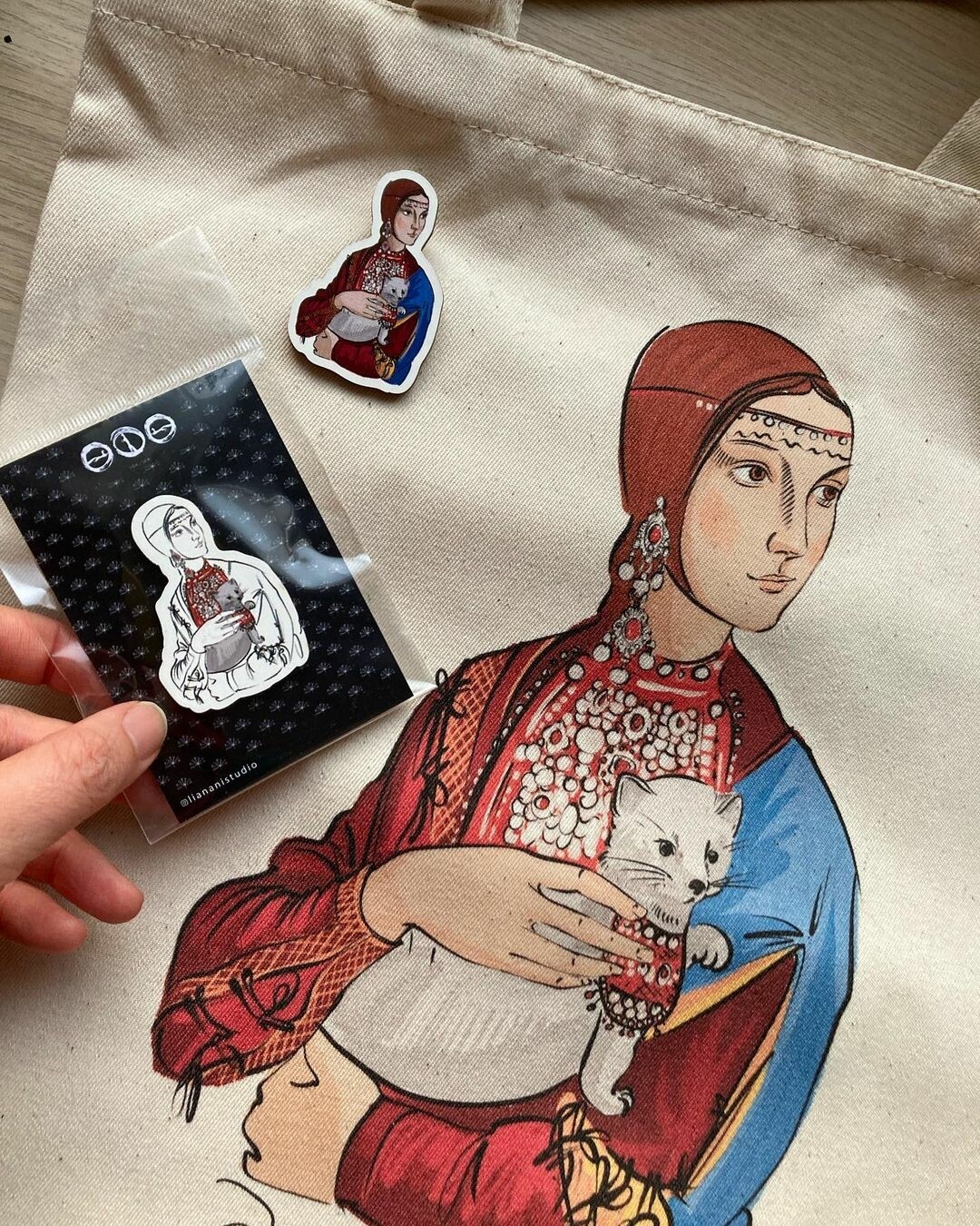 Уфимская художница создает интересные работы с элементами национального колорита, порой переплетая башкирские мотивы с мировыми шедеврами. Вам покажется, что вы где-то видели даму с куницей, загадочную барышню в нагруднике или девушку с пиалой. В магазине «Знание» можно приобрести открытки, значки, магниты, стикерпаки с иллюстрациями Лианы Ни. А стильные шоперы ищите в бутике Sens.