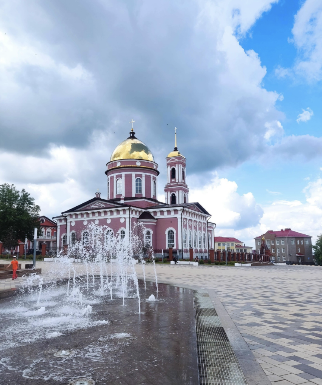 Главный архитектурный акцент центра – Свято-Троицкий собор, построенный в 1835-1841 годах. Это один из старейших каменных храмов Башкирии. Здание видно из разных точек города благодаря высоким куполам и колокольне. Рядом – небольшая территория с зеленью и лавочками, где можно посидеть в тени.