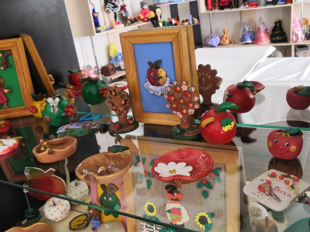Отдельная часть выставки посвящена тому, как в городе развивались производства десертов, соков и варенья из местных яблок. В центре зала стоит декоративная яблоня, на бумажных плодах которой посетители оставляют свои пожелания.