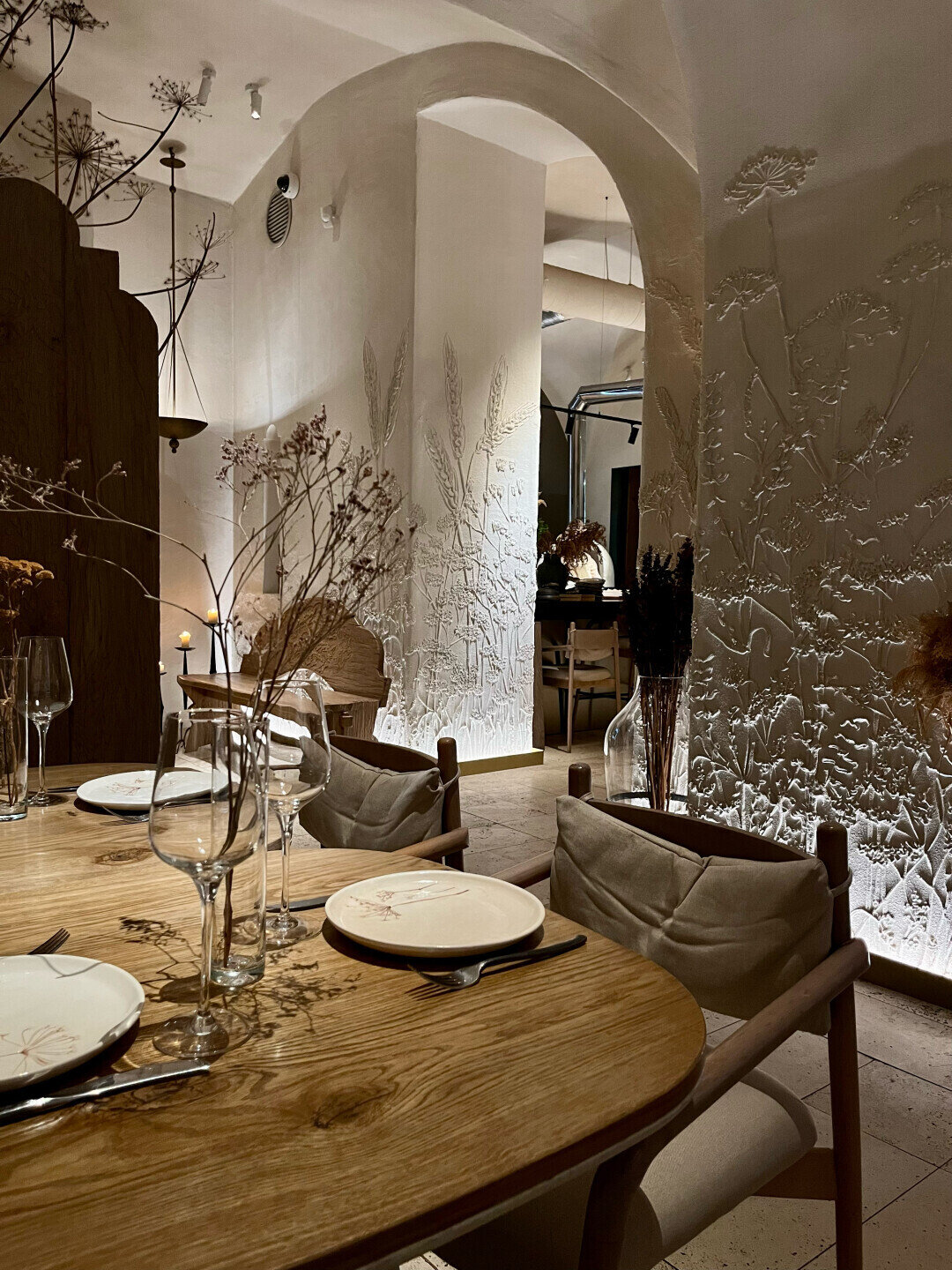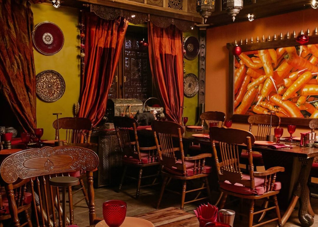 Эстетика этого ресторана – на уровне галереи. Интерьер собран из элементов южноазиатского декоративного искусства: деревянная резьба, латунные светильники, керамика – все хочется разглядывать. В меню – карри, масала, бирьяни и другие блюда из разных регионов Индии, включая Кералу. Здесь можно буквально попробовать другую культуру на вкус.