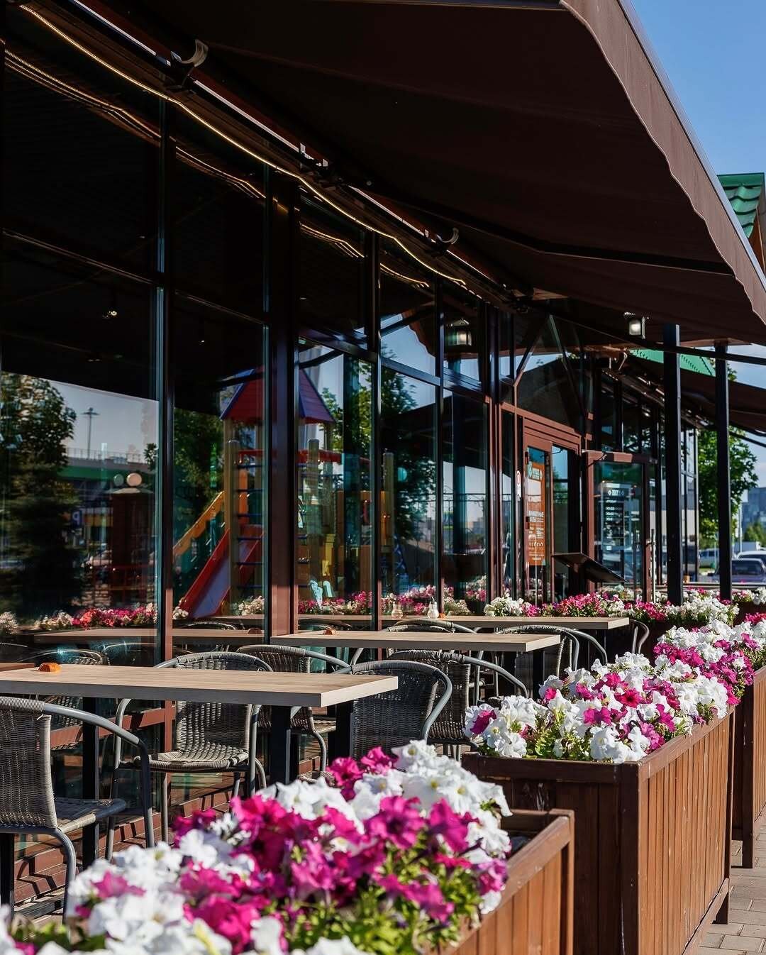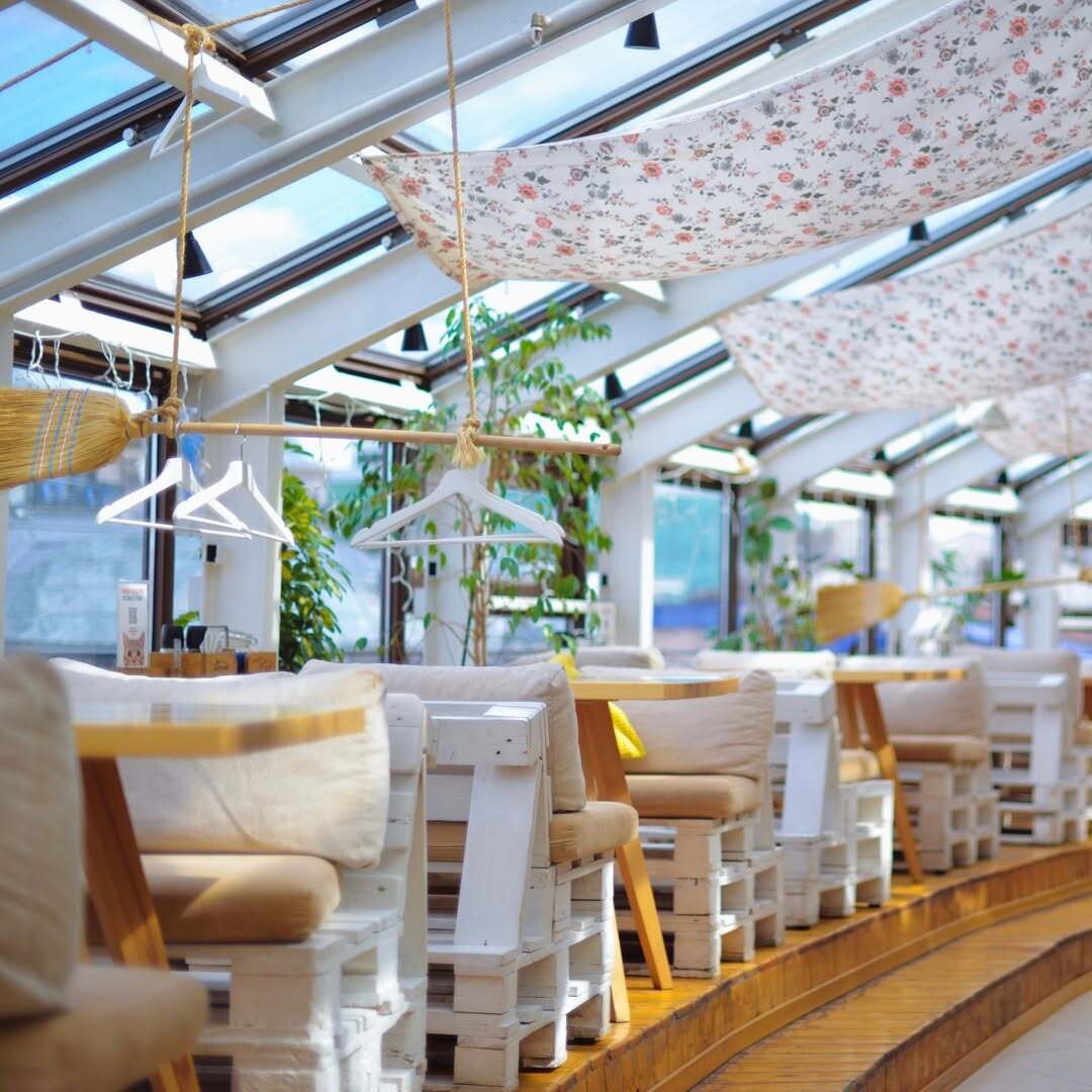 Пятый этаж ТЦ «Свита Холл» – и Казань как на ладони. Внутри – светлый зал с плетеной мебелью, живыми растениями и стеклянной крышей, пропускающей дневной свет. Меню сочетает европейские и азиатские акценты: тар-тар из говядины с луковым вареньем, том ям с тигровыми креветками, панцанелла с креветками и буррата с хрустящими баклажанами. Для любителей мяса – стейк из брискета и голень индейки в соусе барбекю.
