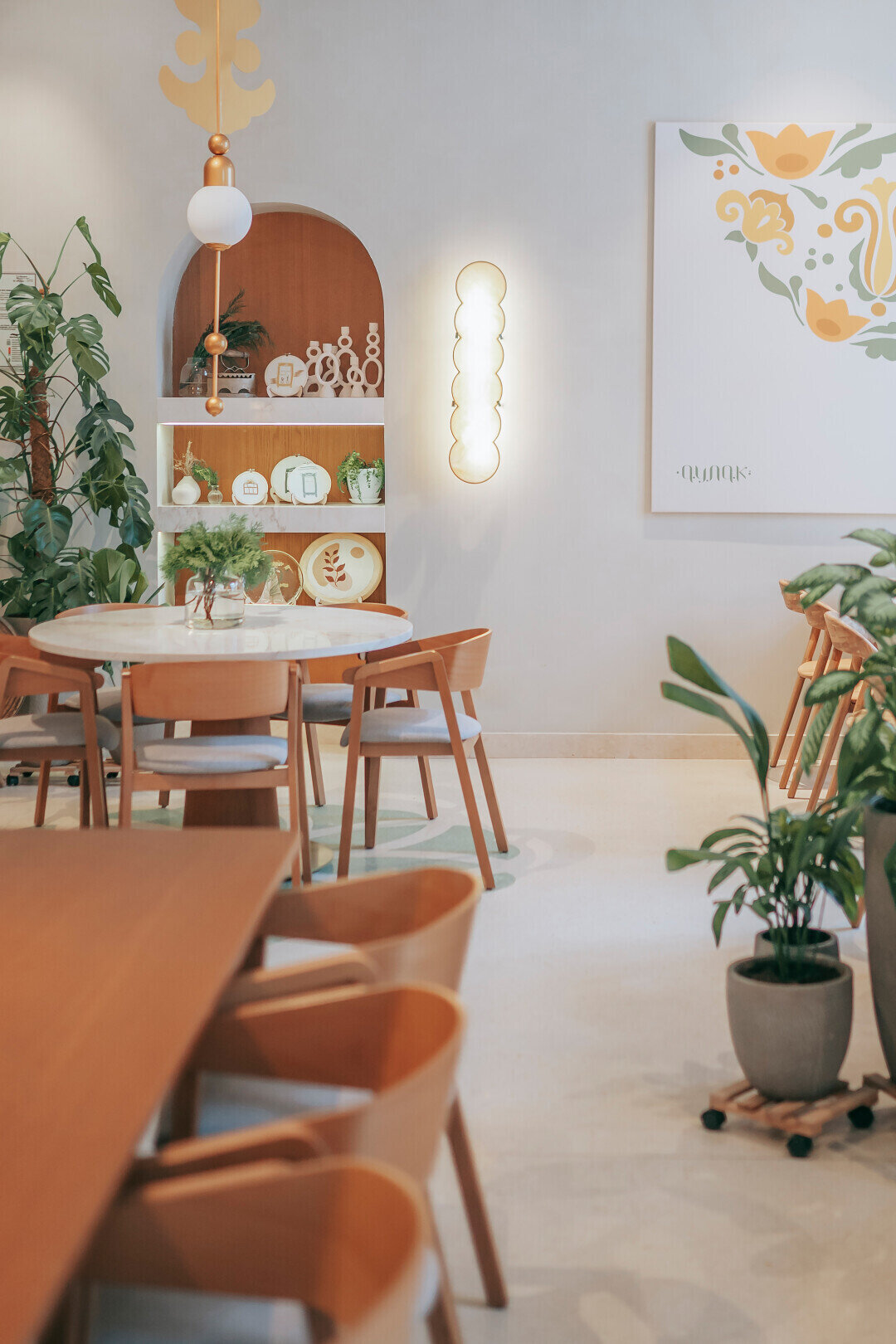 Название кафе означает «уединенный» – и это лучше всего описывает атмосферу: мягкий свет, ковер на стене, сервис на полках и много растений. Здесь подают татарские завтрак, бал-ти, матчу и раф. В меню – сэндвич с рванной кониной, пельмени с бульоном, пирог с калиной, бурсак с бал маем, пончик с аргамаком, зернистые сырники с соленой карамелью и сотами из белого шоколада.