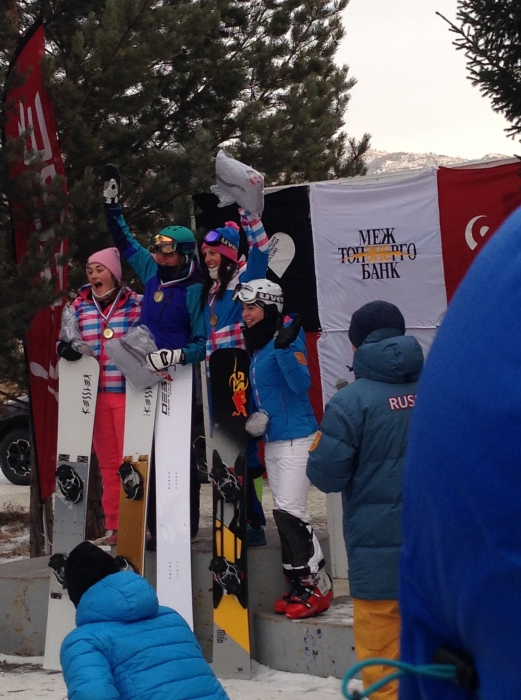 В итоге в конце месяца я, довольная и уставшая, вырвалась на неделю в Абзаково. Приехав, случайно оказалась зрителем на этапе Кубка России по сноуборду. Сначала думала – какие-то штатные соревнования, но когда столкнулась в продуктовом магазине с Виком Уайлдом и Аленой Заварзиной – поняла, что все серьезно. Вик, кстати, уже довольно хорошо говорит по-русски, Алена, наоборот, только так болтает по-английски.