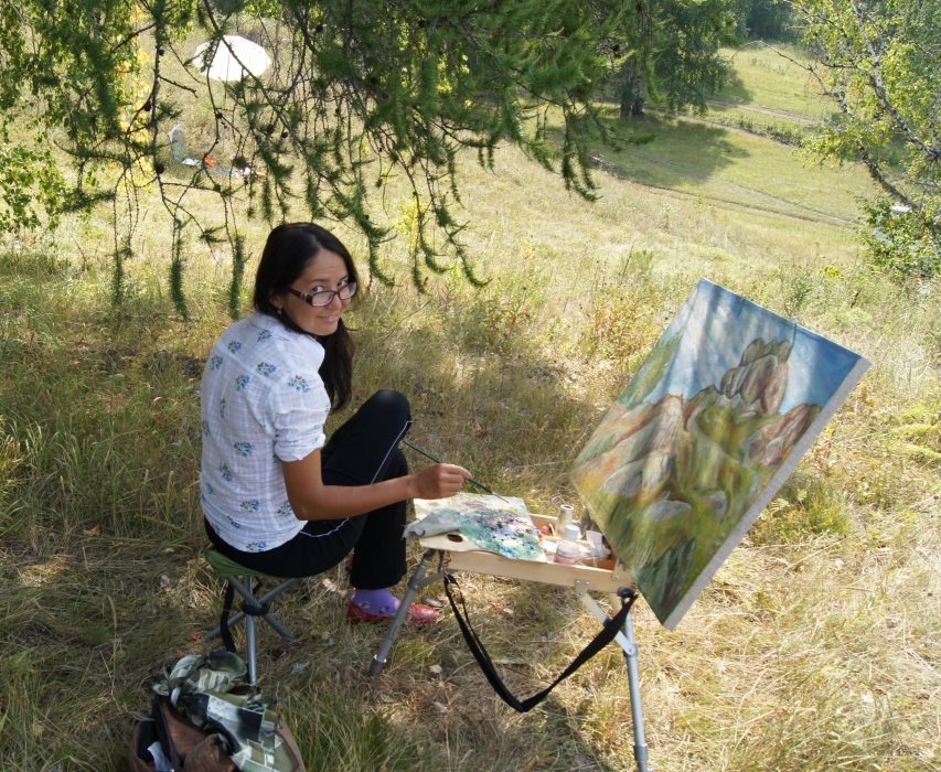 «Рука об руку в родном краю» – это около шестидесяти работ, которые создавались на протяжении двух лет. Мы не задумывали его специально, он сложился сам собой. Дело в том, что мы с Верой – давние подруги, вместе учились, вместе проходили этапы творческого взросления. И наши картины – это взгляд на Башкирию, ее природу, историю и традиции с точки зрения разных культур. Полностью проекты можно было увидеть на выставке, которая прошла в галерее «Мирас» в прошлом году, сейчас часть работ находится в наших мастерских, другая часть участвует в разных выставках в России и за рубежом.