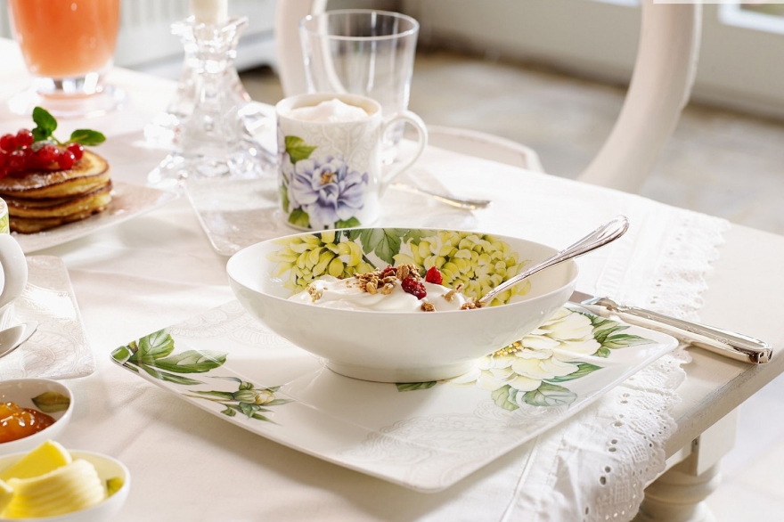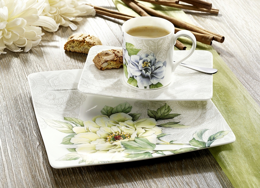 «Величайший и благороднейший город, самый лучший для торговли из тех, что имеются в мире. Его площадь насчитывает более ста миль, корабли могут проходить под двенадцатью тысячами мостов » – так путешественник и сын купца из Венеции описывал этот город. Ни о каком другом месте своих путешествий он не отзывался с таким восторгом, как о тогдашней столице династии Южная Сун, финальной точке проложенного им Великого шелкового пути. Город, который сейчас носит название Ханчжоу, и сегодня славится своими природными красотами – великолепными садами, посмотреть на которые приезжают со всего Китая, Гонконга и Макао, и зеленеющими чайными плантациями. Все это и послужило источником вдохновения для дизайнеров марки Villeroy & Boch, украсивших коллекцию посуды Quinsai Garden изящным узором «пейсли» и экзотическими цветами. Они, как и положено растениям китайского сада, имеют свое значение и смысл. Пион символизирует богатство и превосходство, камелия – щедрость. Магнолия прославляет императора и отдает дань женской красоте. Хризантема символизирует терпение, смелость и долгую жизнь. Коллекция, созданная из белоснежного костяного фарфора, включает в себя наборы для чая и кофе, блюда для сервировки, пиалы, обеденные и сервировочные тарлелки.