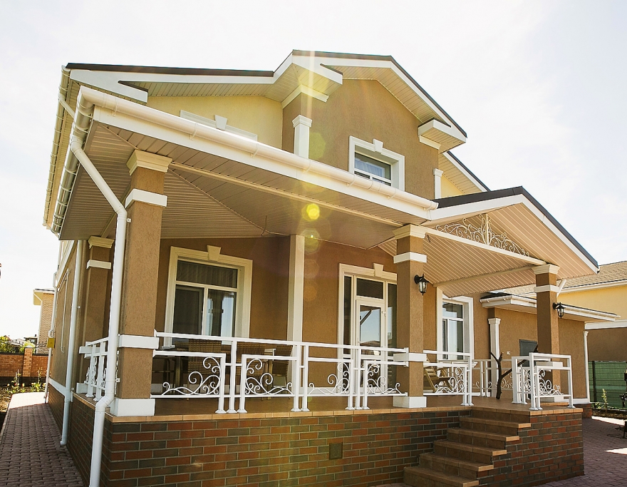 Увидеть дома от компании «Порадом» можно в трех загородных поселках «Цветы Башкирии», «Есенинский» и «Девичья Гора». Загородные дома в классическом архитектурном стиле украшены сдержанным декором на фасаде и коваными элементами по территории террасы. Внутренняя планировка включает холл, гостиную, две спальни, кухню и ванную комнату. На участках можно заказать строительство дополнительных сооружений в едином стиле с домом – гаража, террасы или забора.