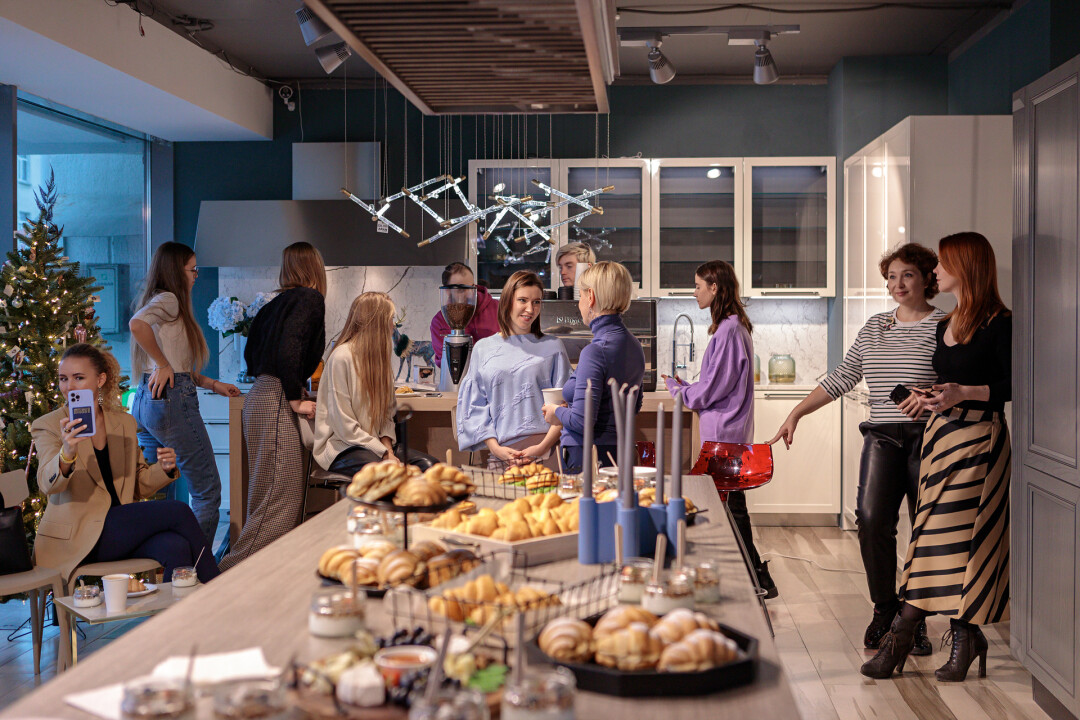 Менеджеры салона рассказали о продукции, популярных моделях и новинках в итальянских фабриках Aran Cucine, Calligaris, Connubia, Ditre Italia, Luce Plan, Calia Italia. Бариста сети кофеен Monkey Grinder угостили дизайнеров кофе: за вкусным завтраком гости обсудили новые тренды в отделке интерьеров.