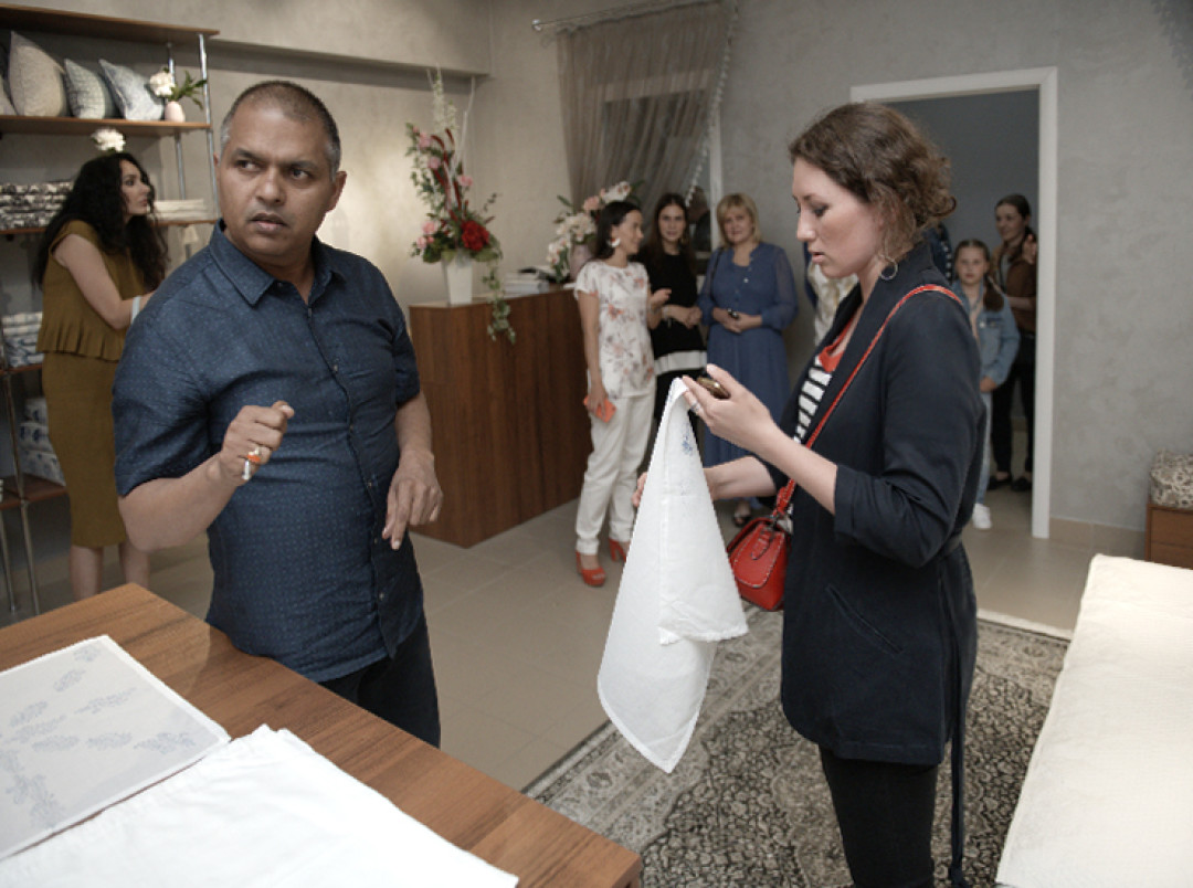 Гостей познакомили с ассортиментом экологичного постельного белья. В формате мастер-классов первые покупатели шоурума узнали о технологии изготовления тканей для дома: в Inka всю продукцию делают в Индии вручную методом «блочной печати».
